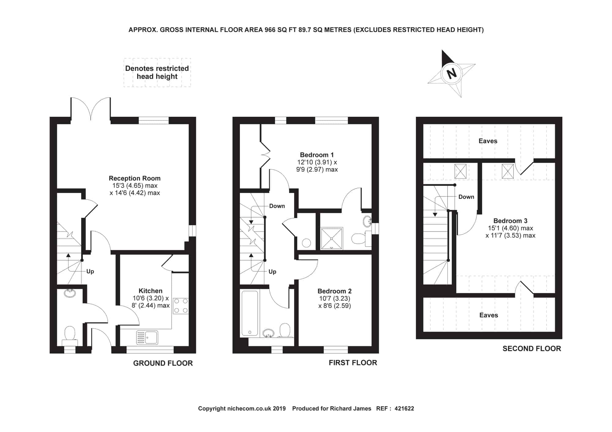 Deceptively spacious family home ready to move into. Situated in the village of Lyneham offering excellent local amenities and offering local catchment to Royal Wootton Bassett schools. In our opinion the property has been finished to a high standard and comprises entrance hall with cloak cupboard, kitchen with integrated fridge freezer , dishwasher and washing machine , French doors opening onto an enclosed rear garden whilst giving gated access to TWO allocated parking spaces. First floor comprises master bedroom with ensuite shower room and double built in wardrobes, bedroom two and family bathroom with stair case leading to the second floor having bedroom three with feature skylight windows to the rear and eaves storage.