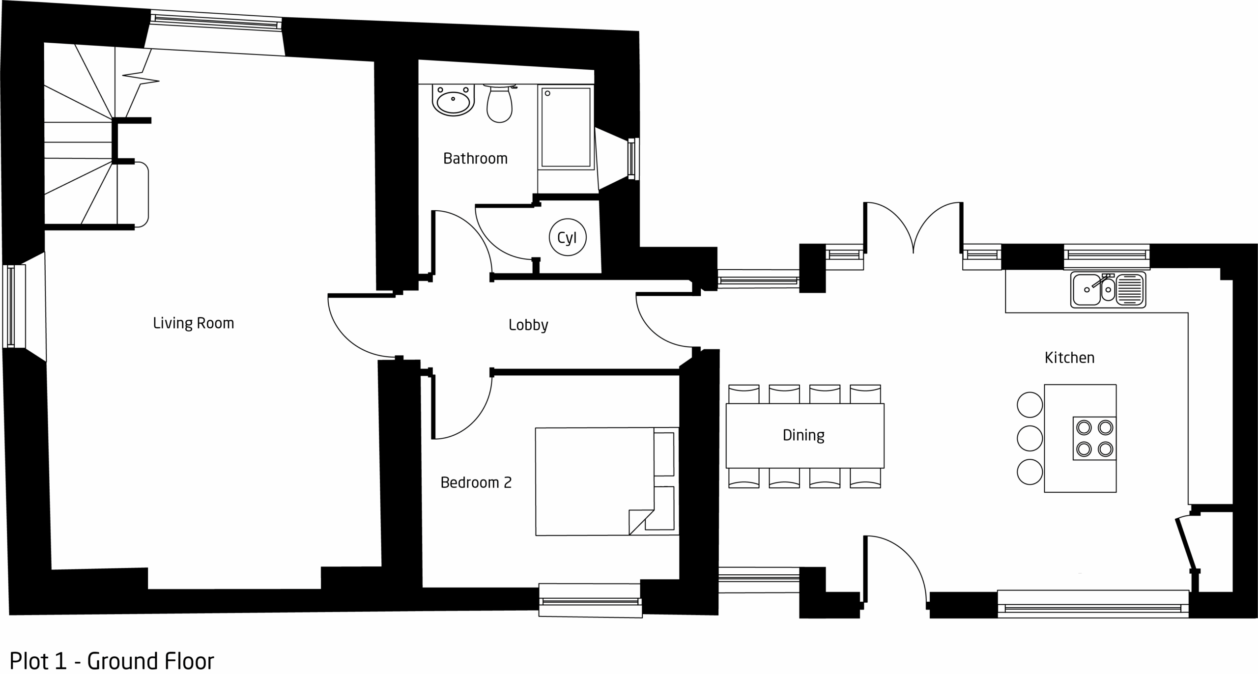 A thoughtfully designed renovation of a Grade II listed home offering spacious, flexible living across two floors. Computer Generated Images (CGIs) are for illustrative purposes only. This two-bedroom home will combine the historic charm of the site with contemporary design and modern technology to create the perfect Cotswold home. The ground floor features a wellproportioned living room and a generous open-plan kitchen/dining or entertaining space with access to the garden. A second double bedroom and family bathroom complete the layout. Upstairs, the principal bedroom occupies the entire first floor, with twin fitted wardrobes and a private shower room. Plot 1 comes with a good-sized outbuilding, which would be the perfect space to make into a studio, home office, gym or workshop.