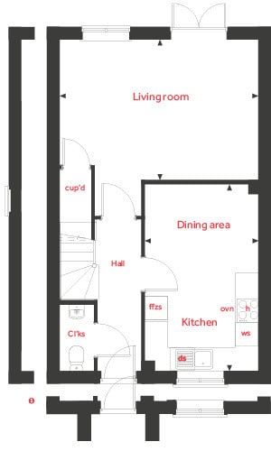 The Elmslie is a lovely, bright, spacious three-bedroom home. Enjoy the open plan kitchen/ diner, a large living room that runs the width of the house with glazed doors to the garden, as well as under stairs storage. Upstairs are three good-sized bedrooms and the family bathroom. The main bedroom has the luxury of an en suite shower room and built-in wardrobe.