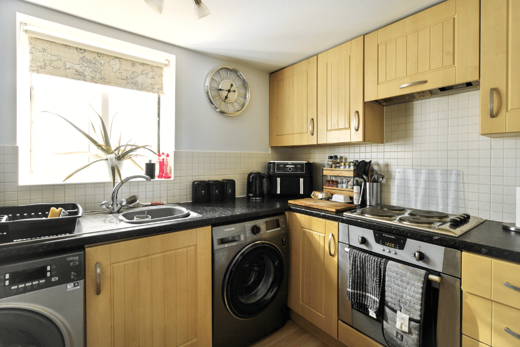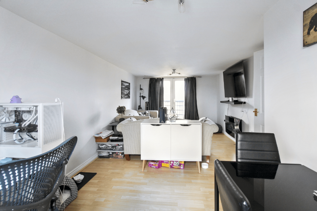 The accommodation comprises; communal entrance hall with stairs to apartment entrance hall, separate kitchen, bedroom one with ensuite shower room, bedroom two, living/dining room & family bathroom.