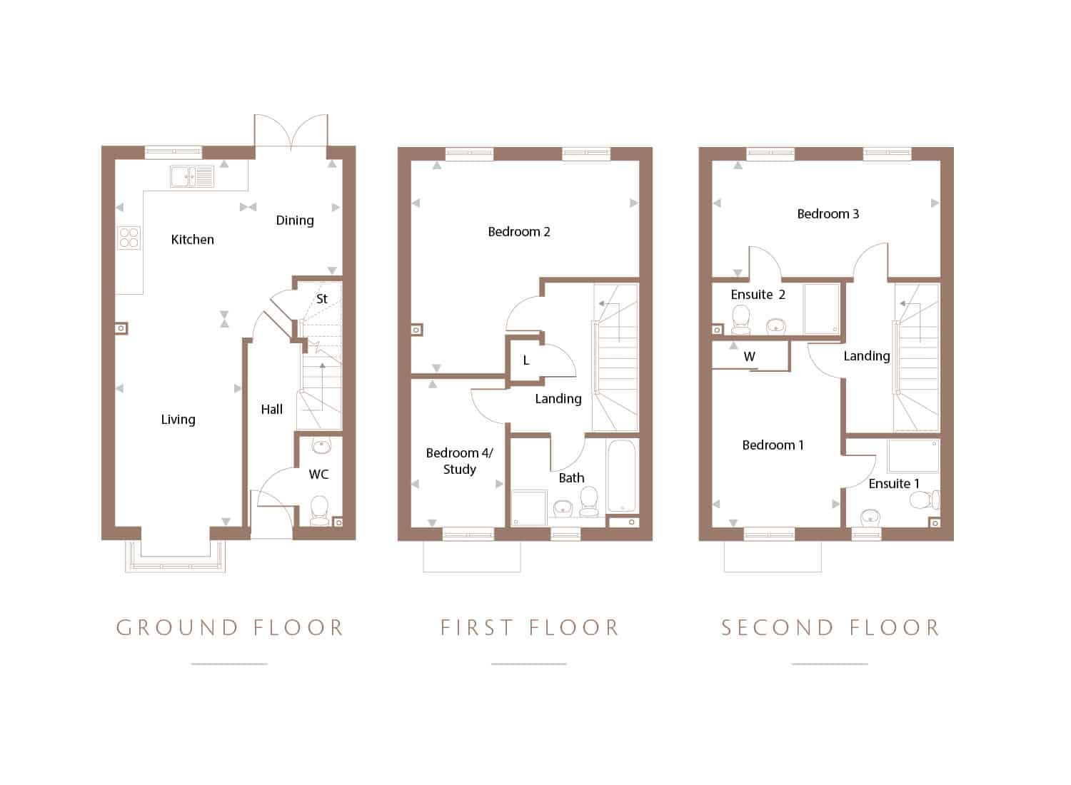 The Grange at Western Gate is a generously sized 4-bedroom semi-detached, 3-storey home offers a perfect blend of space and modern design. The open-plan kitchen, living, and dining area serves as the heart of the home, featuring French doors that open onto a spacious garden, ideal for entertaining or relaxing outdoors. The living room is enhanced by a charming bay window, adding character and natural light to the space. A cloakroom off the hallway provides added convenience for family and guests.