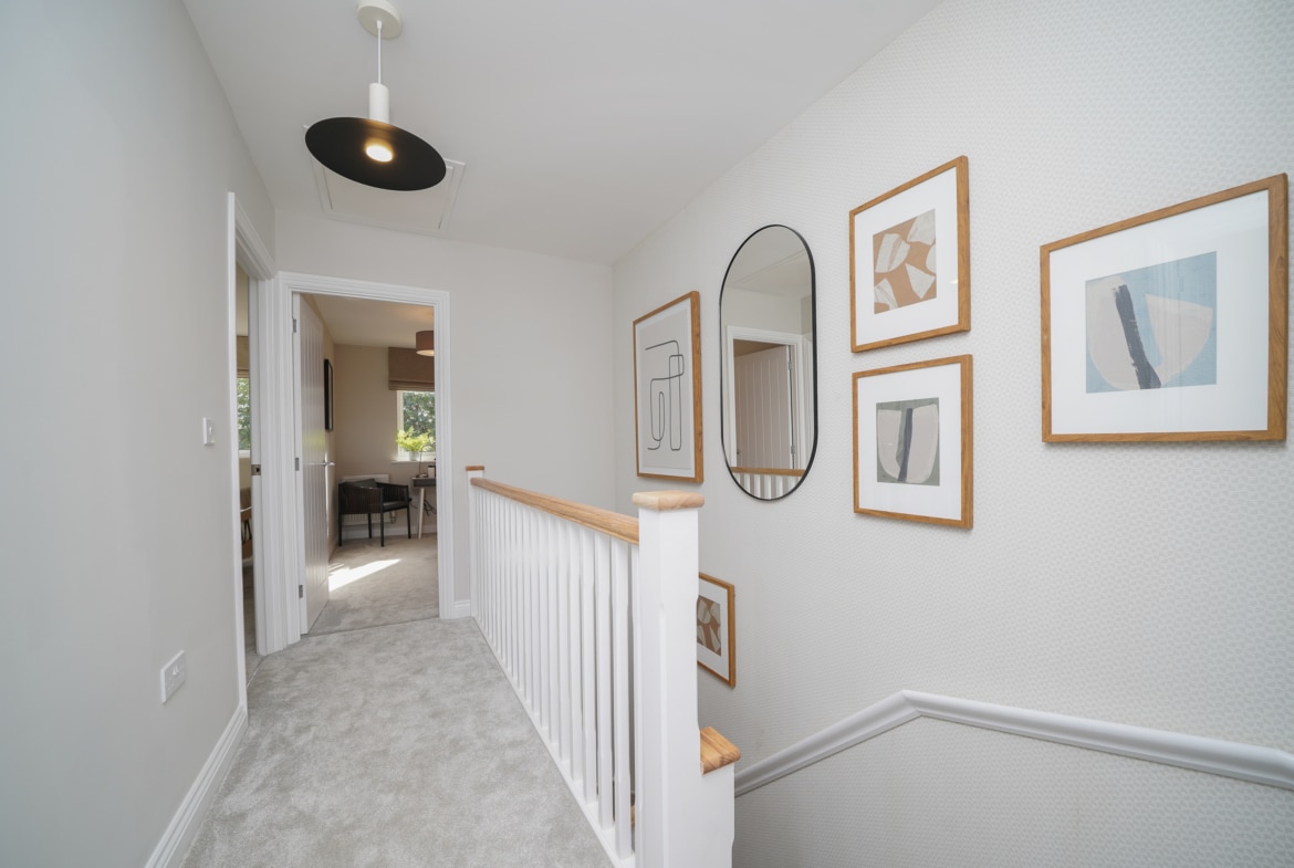 On the first floor, you’ll find bedroom 2 and a versatile bonus room, perfect for a study, home office, or a fourth bedroom. The family bathroom is centrally located, offering easy access to both bedrooms, and includes both a bath and a separate shower enclosure for added flexibility.