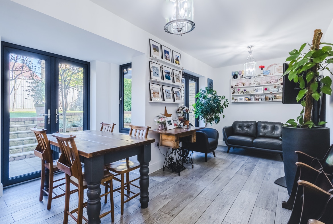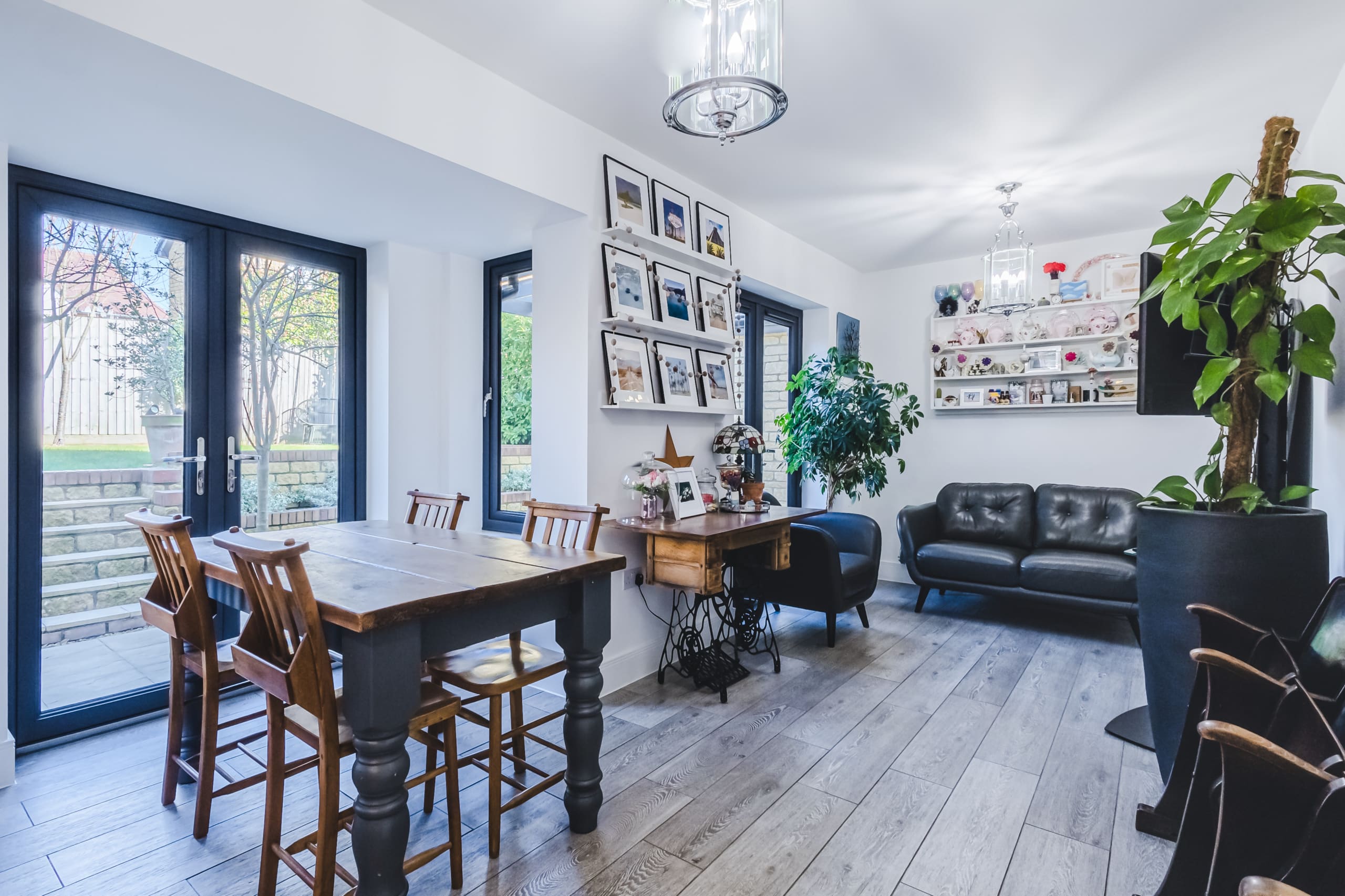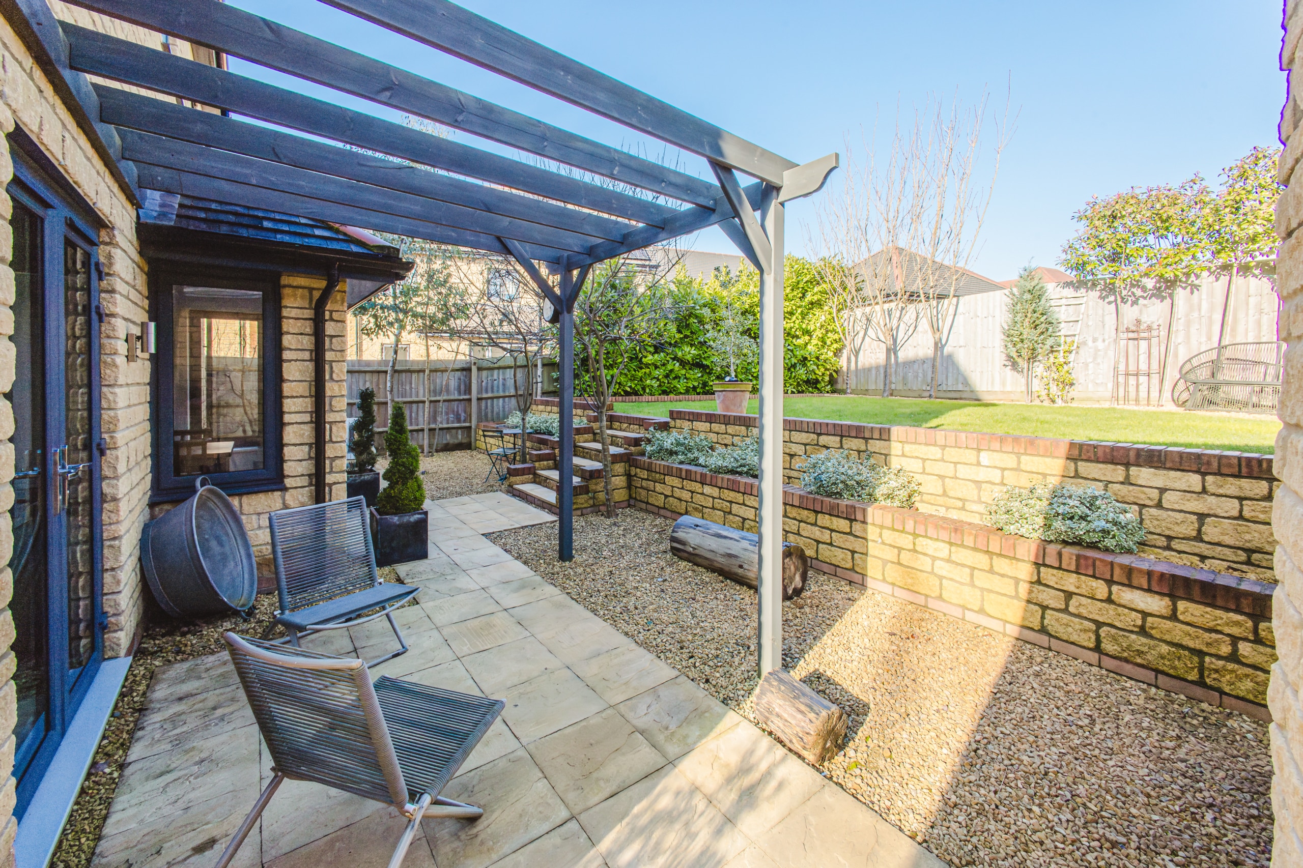 Step into the delightful outdoor space, where a meticulously landscaped rear garden beckons with lush greenery, a well-kept lawn, ample patio space for al fresco dining, and charming pergolas. A garage and ample driveway parking enhance the property’s practicality and appeal, catering to residents’ storage and parking needs effortlessly.