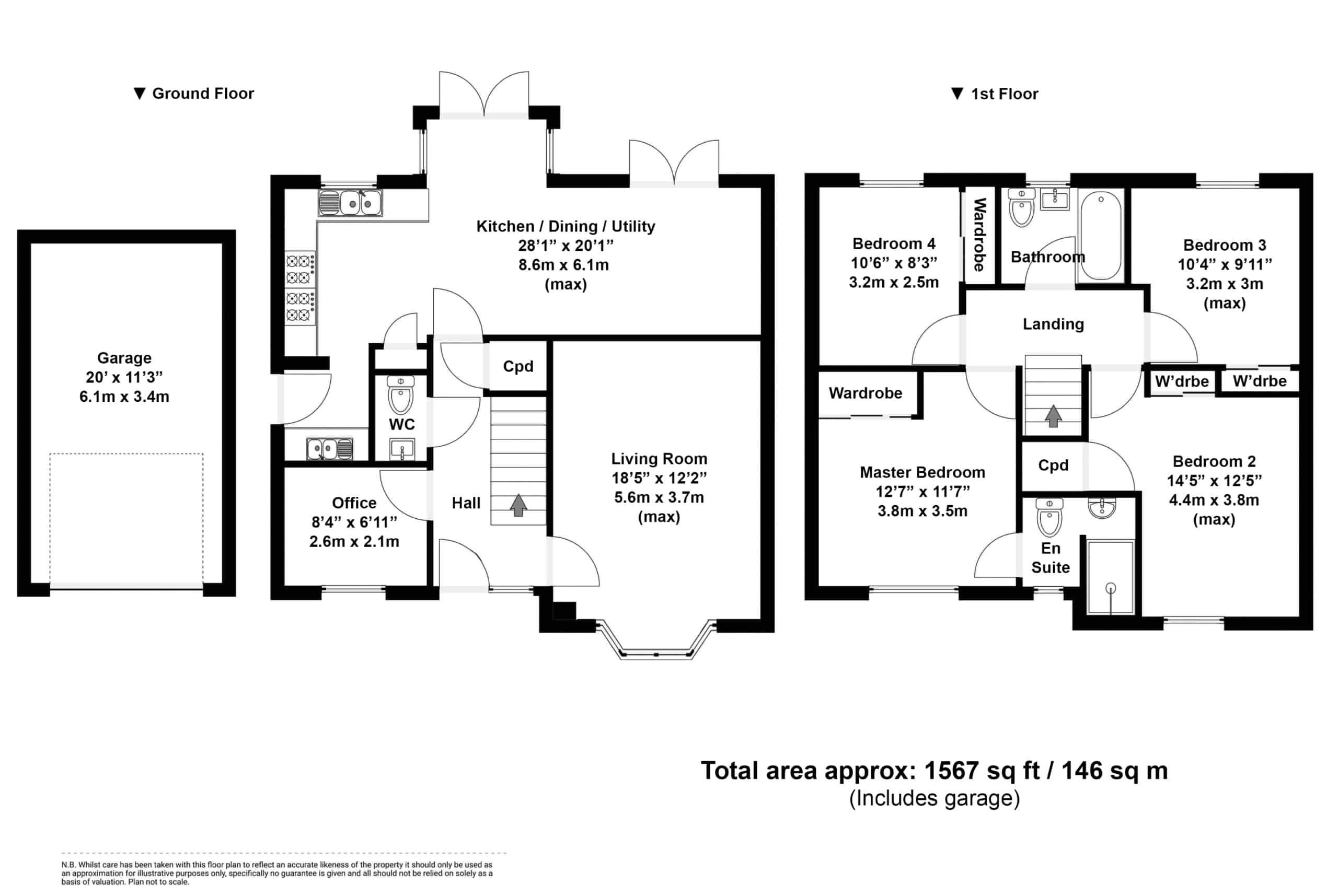 This immaculate property boasts a well-maintained interior, comprising a spacious sitting room with a bay window, a study, and a modern kitchen/diner featuring quartz worktops and a double oven. Additionally, the ground floor includes a utility room for added convenience. Upstairs, four generously sized bedrooms await, with the master bedroom benefiting from an ensuite, while a family bathroom serves the remaining bedrooms.