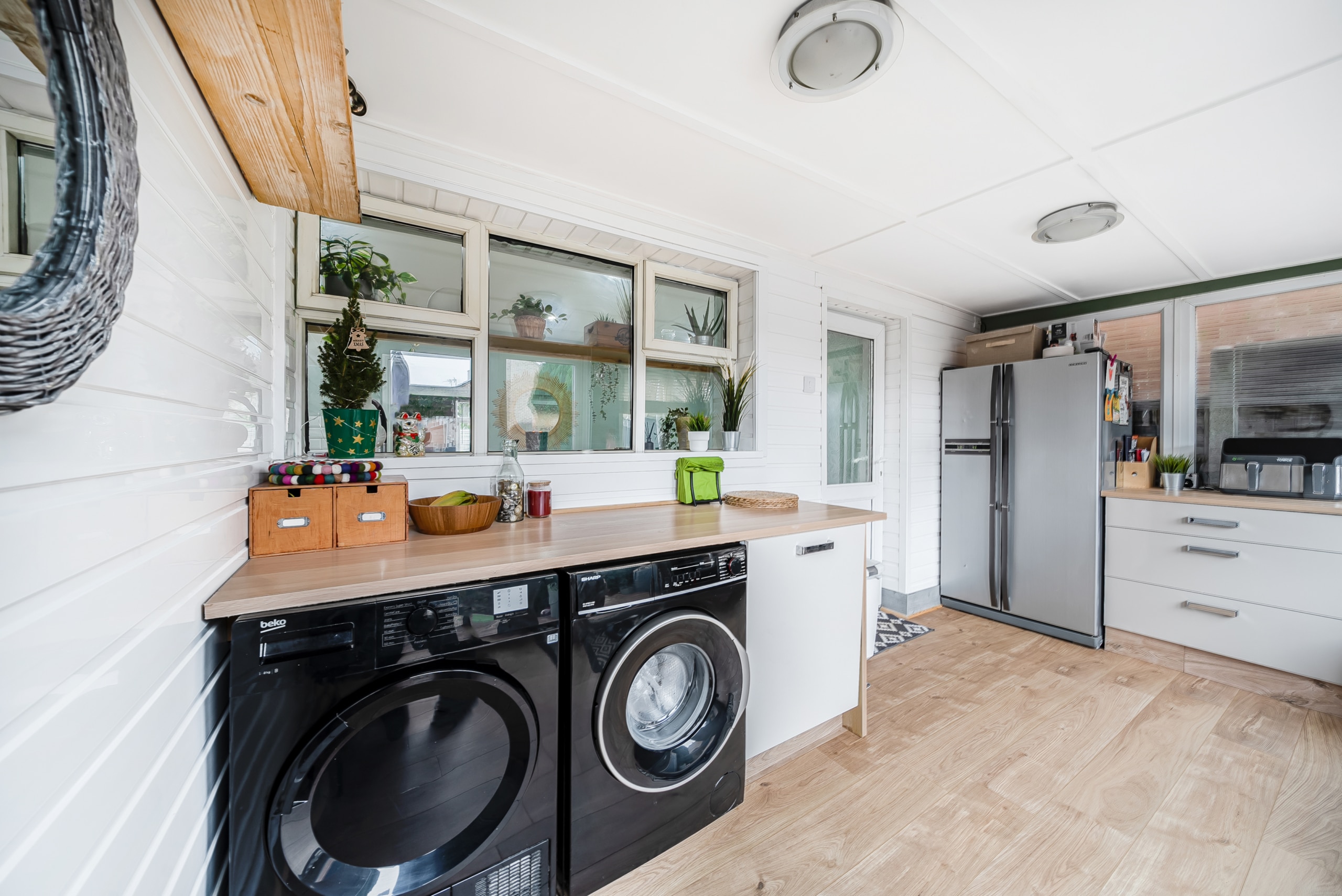 An added bonus is the fully boarded loft space, accessed via a pull-down ladder. The current owners have cleverly utilized this area as a home office or for additional storage, adding even more versatility to the property.
