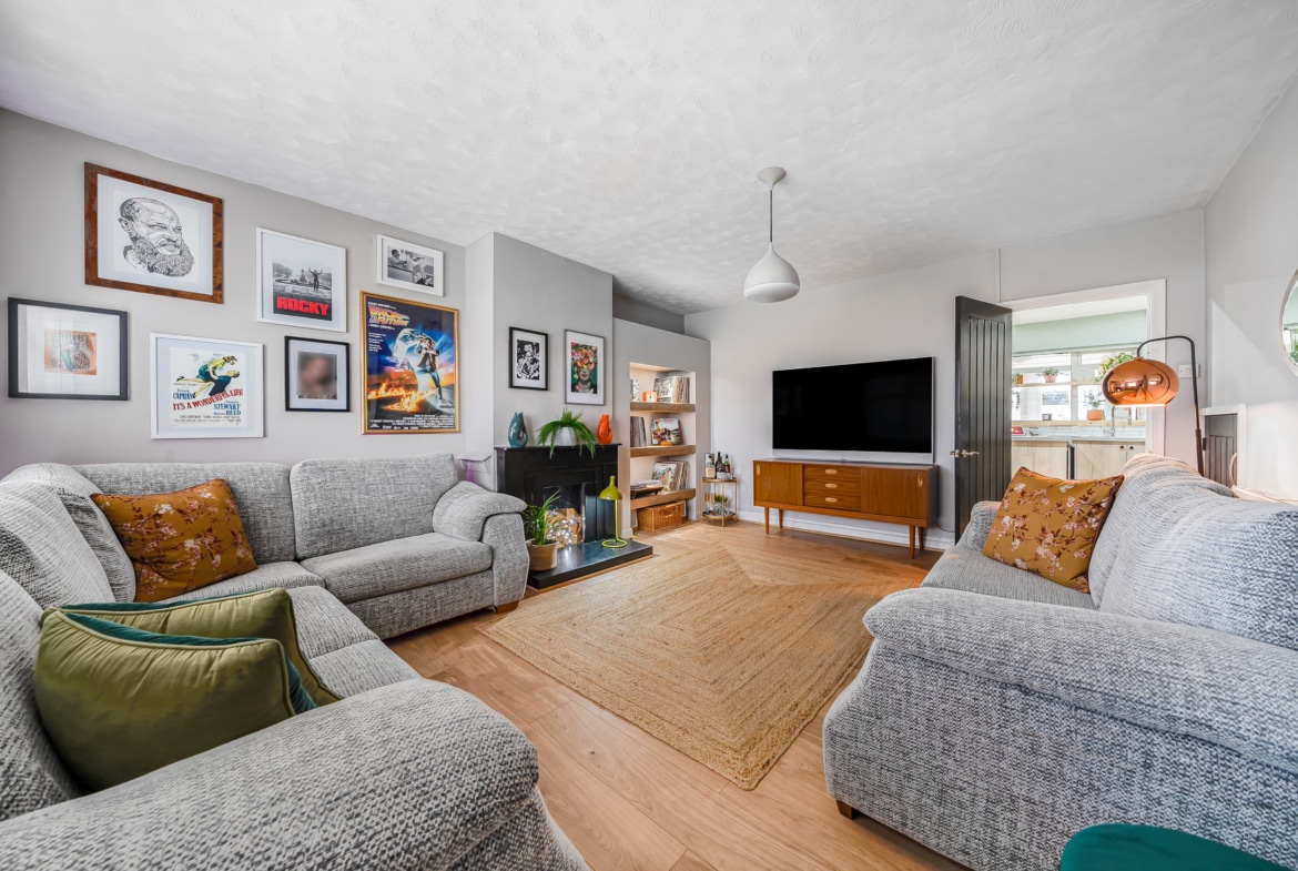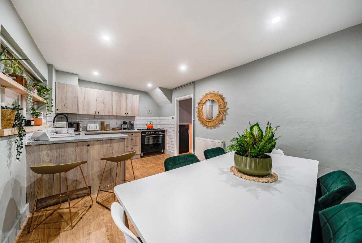 As you step through the entrance hallway, you’re greeted by a spacious and inviting living room, ideal for relaxing with family or entertaining guests. This leads seamlessly to the immaculate and modern kitchen and dining area, complete with contemporary finishes and ample space for meal preparation and dining. Beyond the dining area is a versatile single-storey rear extension, currently used as a utility area but equally suited as an additional reception room. From here, step out into the beautifully maintained garden—a tranquil space perfect for outdoor enjoyment.