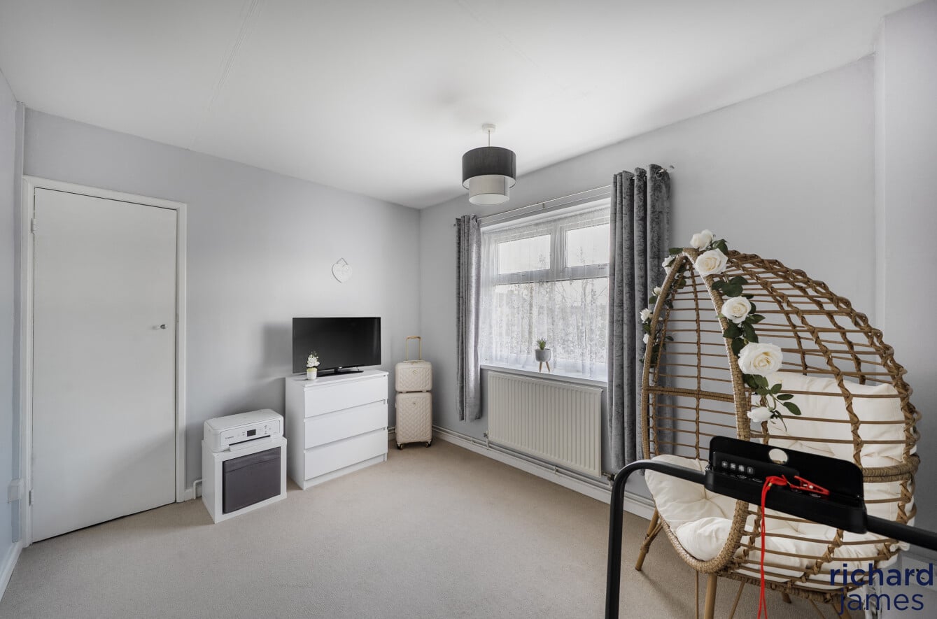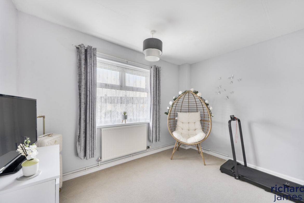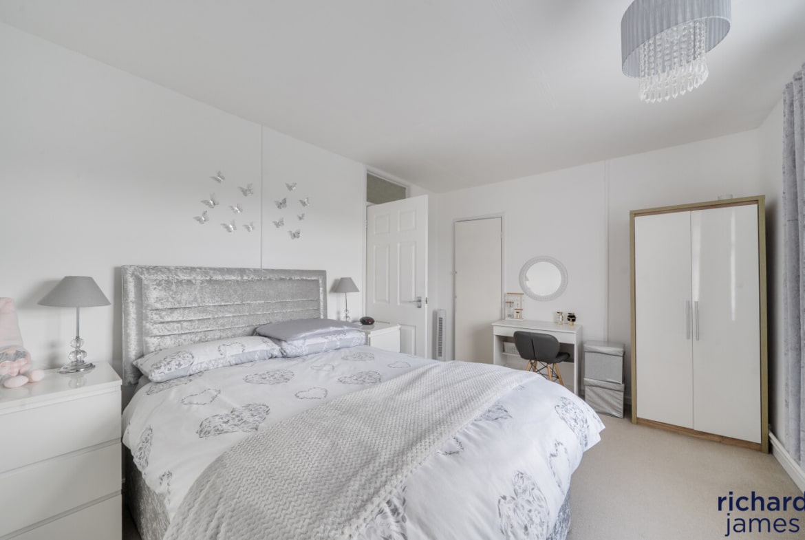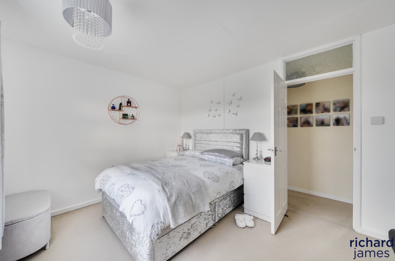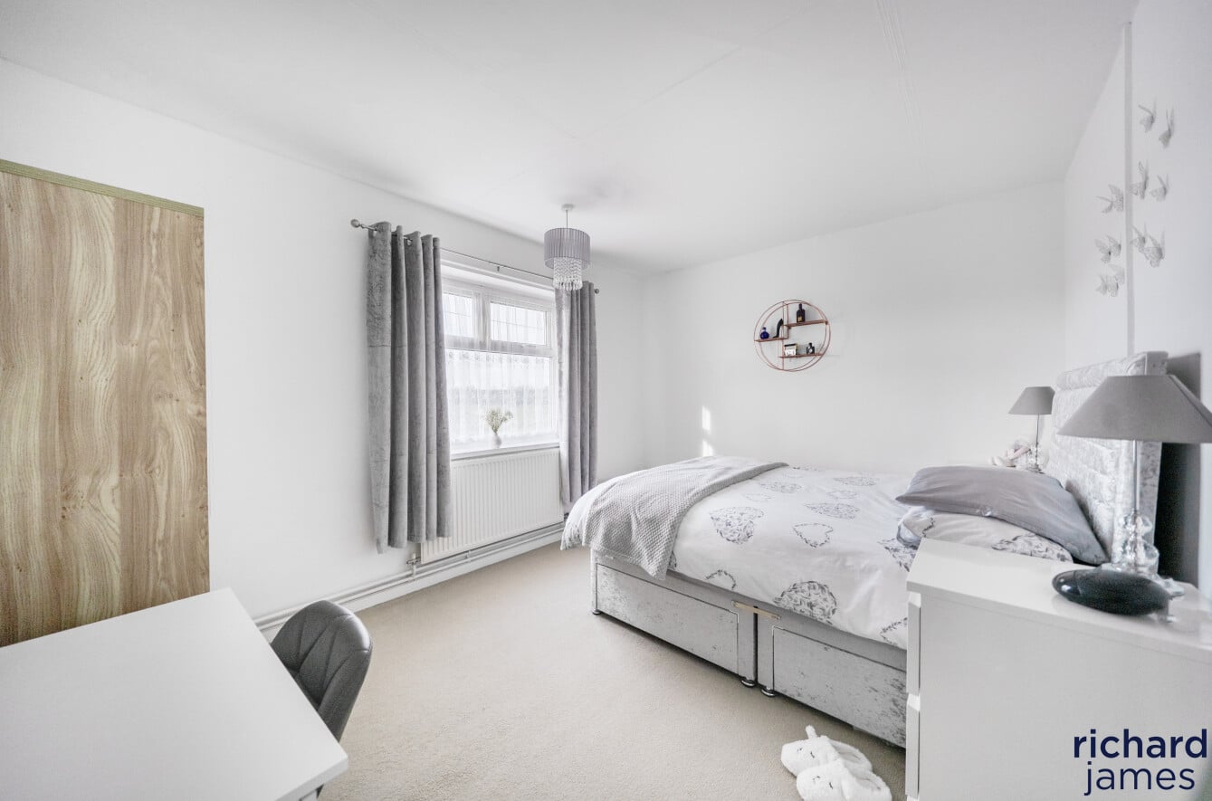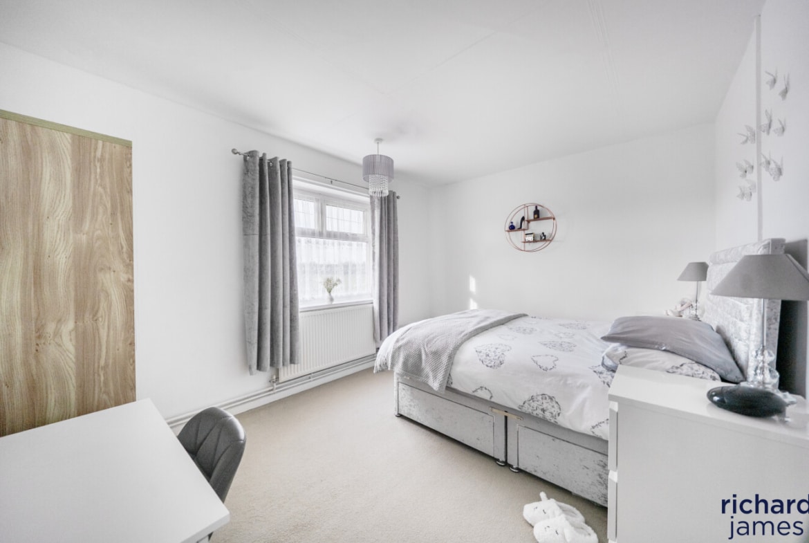 There are two well-proportioned bedrooms, both offering comfortable accommodation and flexibility for family living, guests, or home working. A modern bathroom is centrally located off the hallway, making it easily accessible from all rooms.