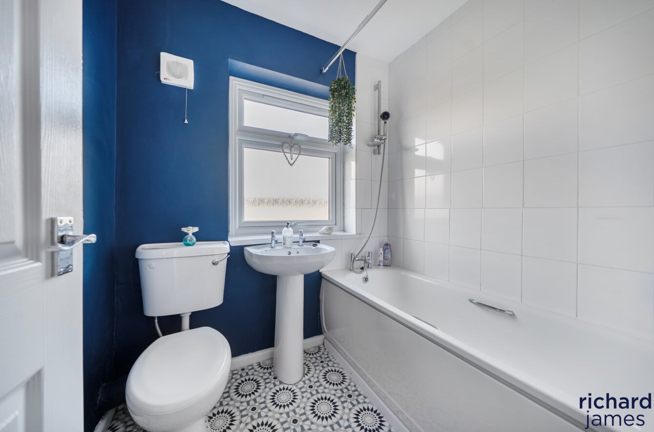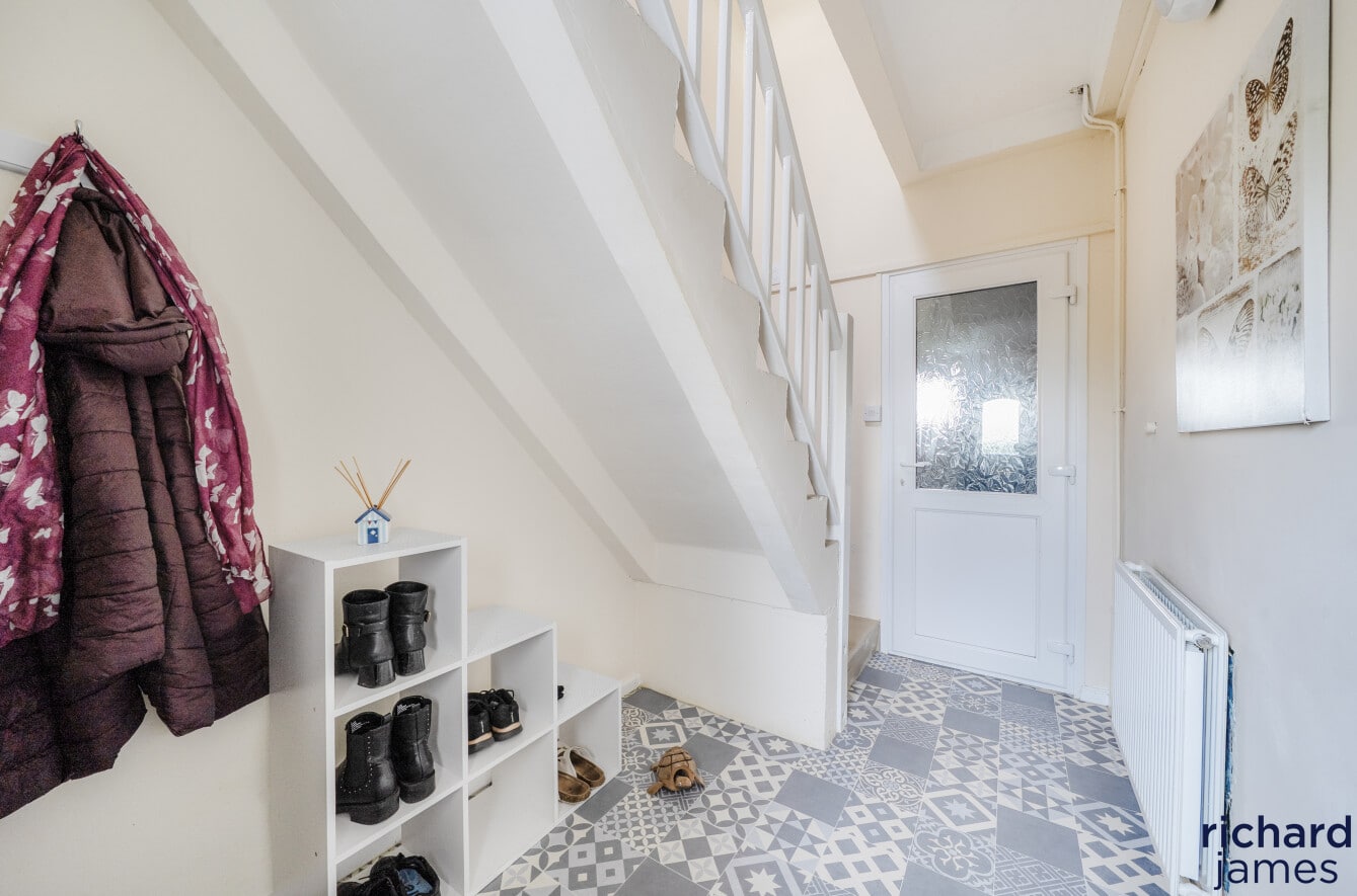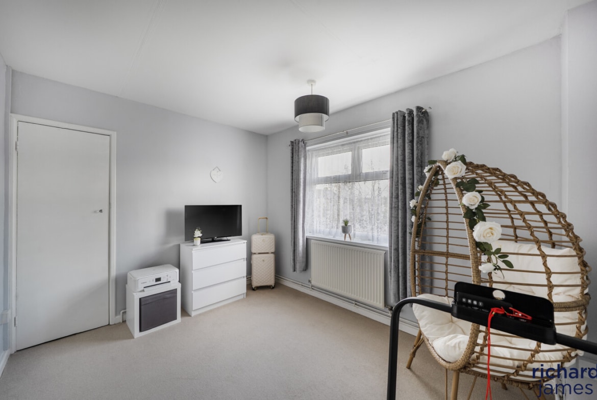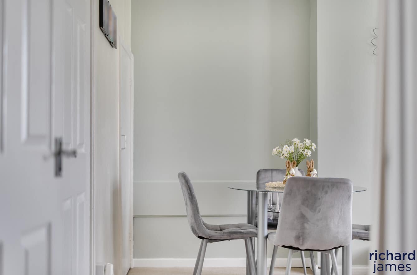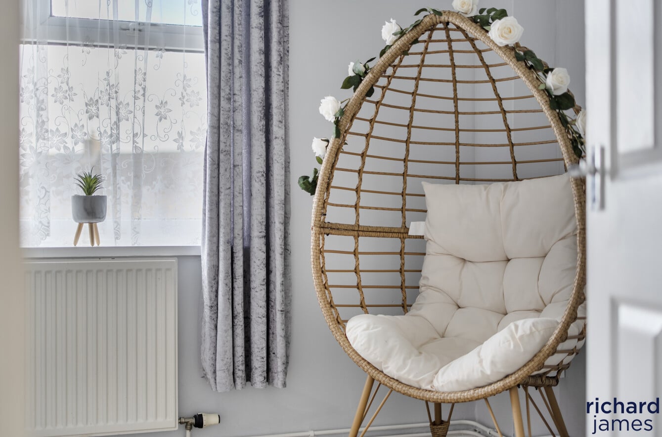 There are two well-proportioned bedrooms, both offering comfortable accommodation and flexibility for family living, guests, or home working. A modern bathroom is centrally located off the hallway, making it easily accessible from all rooms.