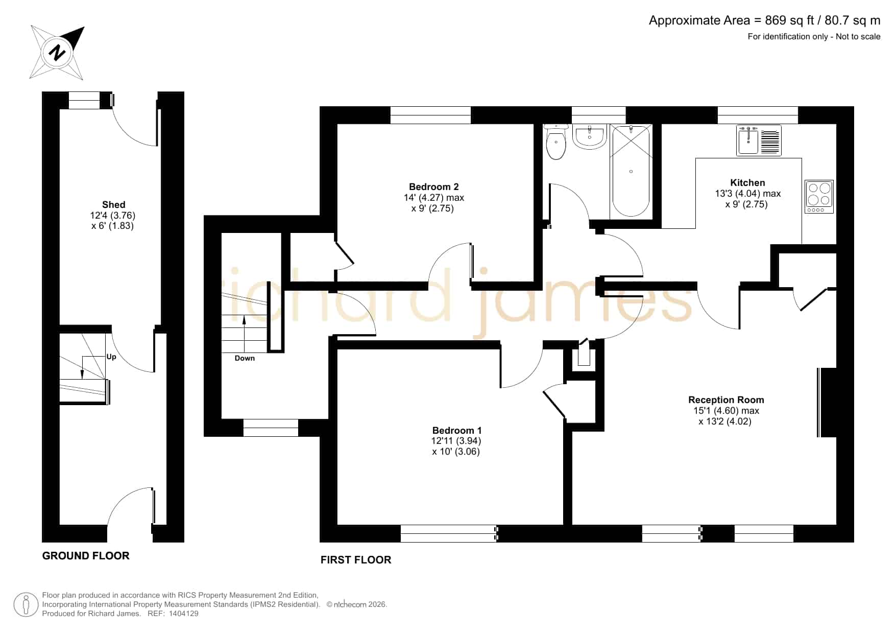 On the ground floor, there is a useful entrance area with access to a separate shed, providing excellent storage space or potential for a workshop or utility use. Stairs lead up to the main living accommodation.