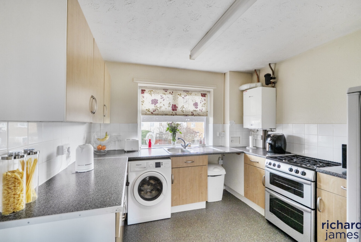 The first floor features a bright and spacious reception room, ideal for relaxing or entertaining. The kitchen is positioned nearby and is well laid out for everyday cooking, with good worktop and storage space.