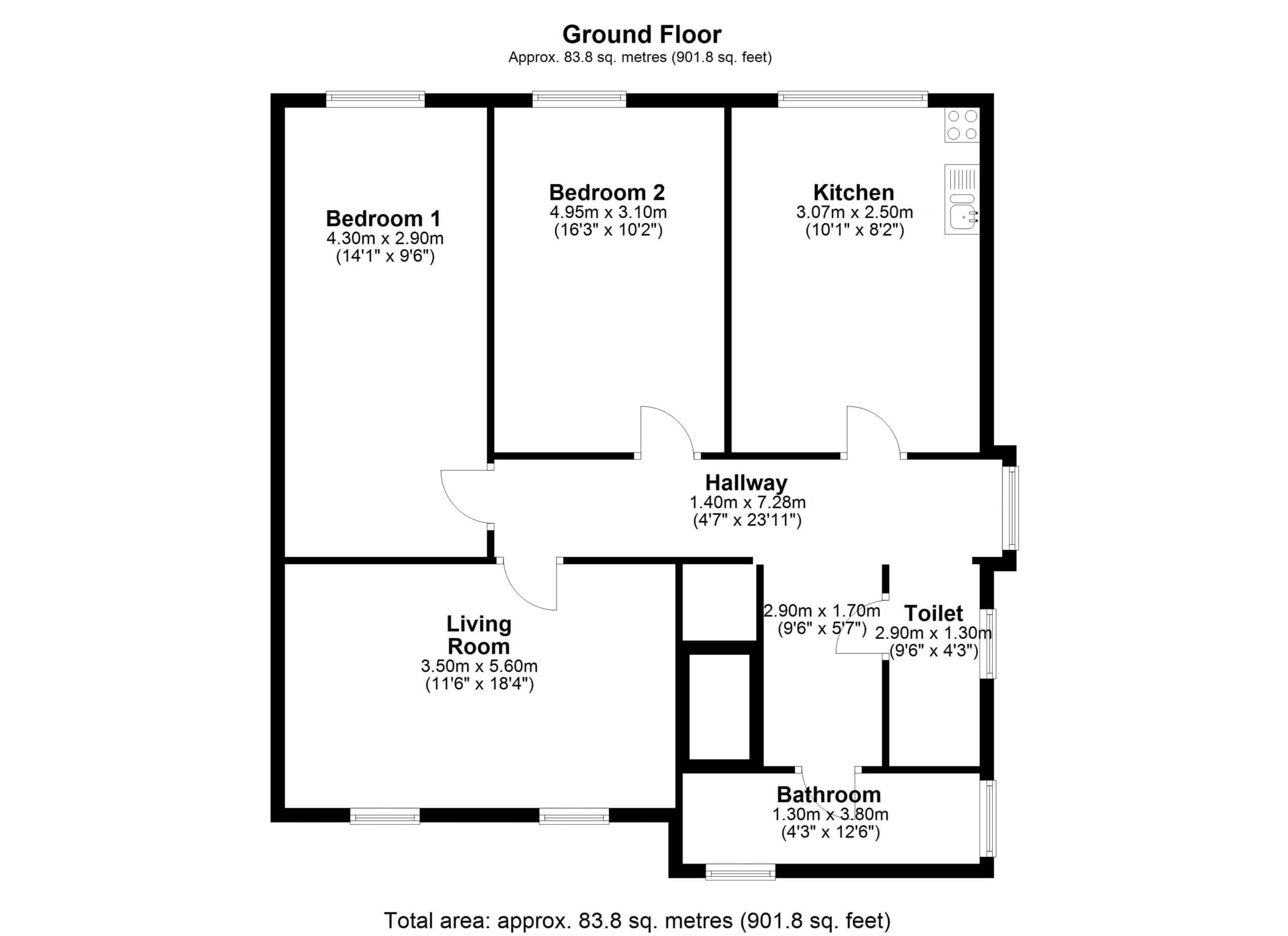 This first floor property comprises; Entrance Hallway, Kitchen including Oven/Hob and Fridge Freezer. A Bright and Airy Living/ Dining Space, Two Double Bedrooms and a Family Bathroom.