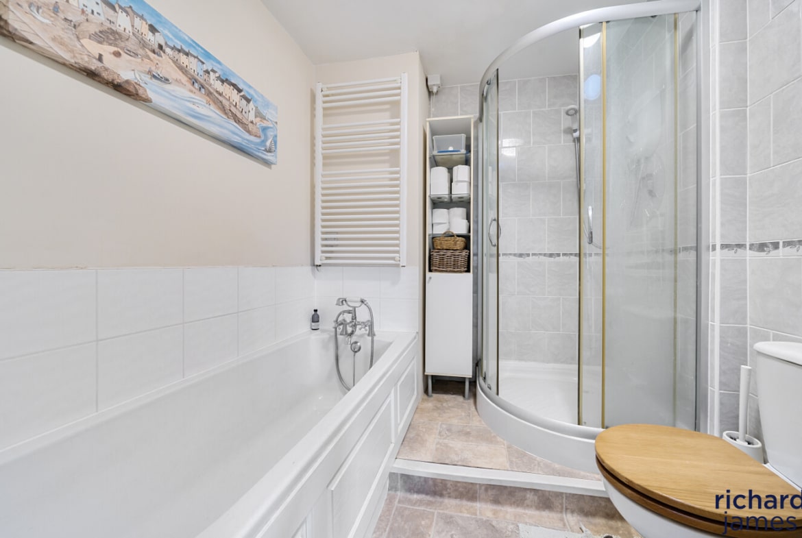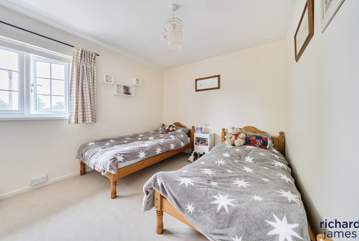 Upstairs, there are four bedrooms, including three comfortable doubles, and the main bedroom features its own en-suite. A well-kept family bathroom serves the remaining rooms. The layout upstairs is balanced, and the bedrooms are all well-sized.