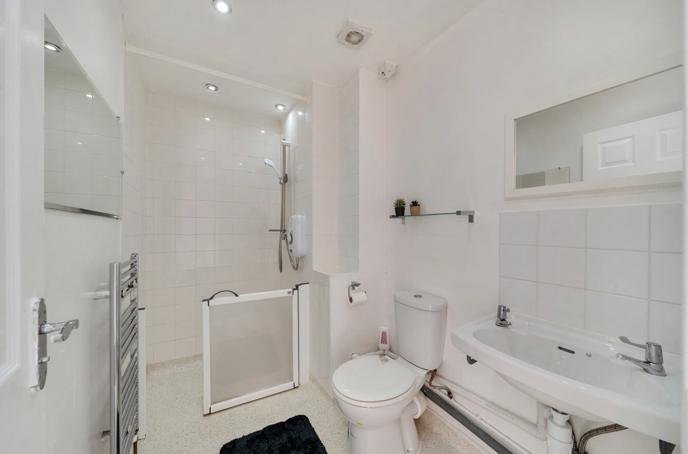 Upstairs offers; two good sized double bedrooms, one of which features a built in wardrobe and a bathroom with walk in shower.