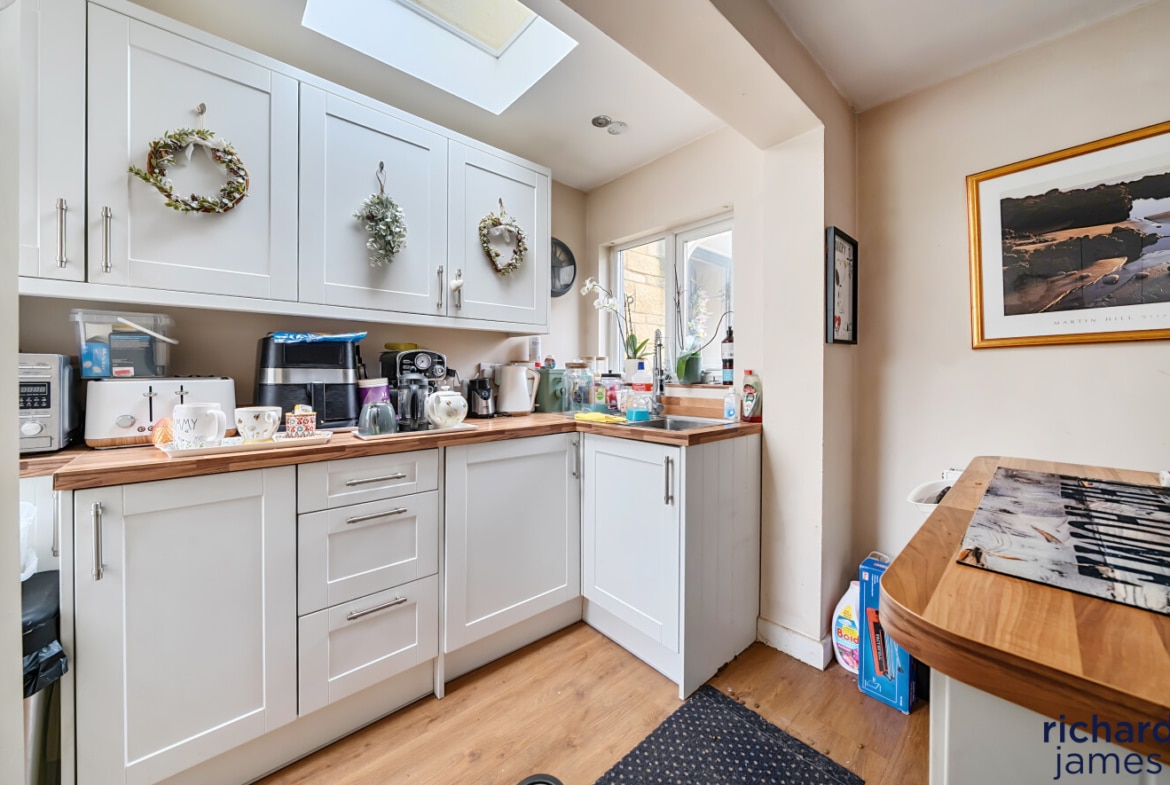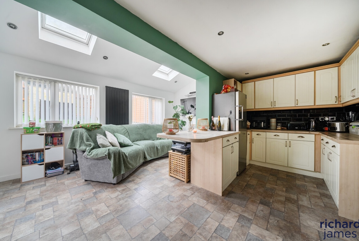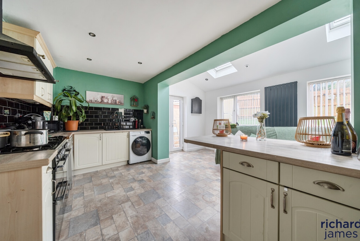 The house has been extended to the rear, creating a larger kitchen and dining area that overlooks the garden. There is also a good size living room at the front of the property, giving the home plenty of space for family life. The layout works well for both everyday living and when friends and family come over.