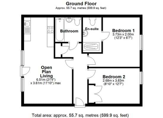 This first floor property comprises; Entrance Hallway, open plan Kitchen/Living Area with all integrated white goods, two double Bedrooms with En-Suite to Master and a Family Bathroom. Also benefitting from an allocated Parking Space.