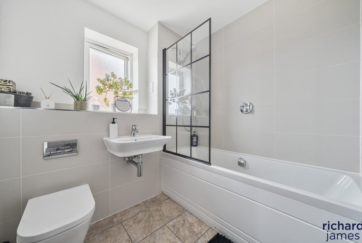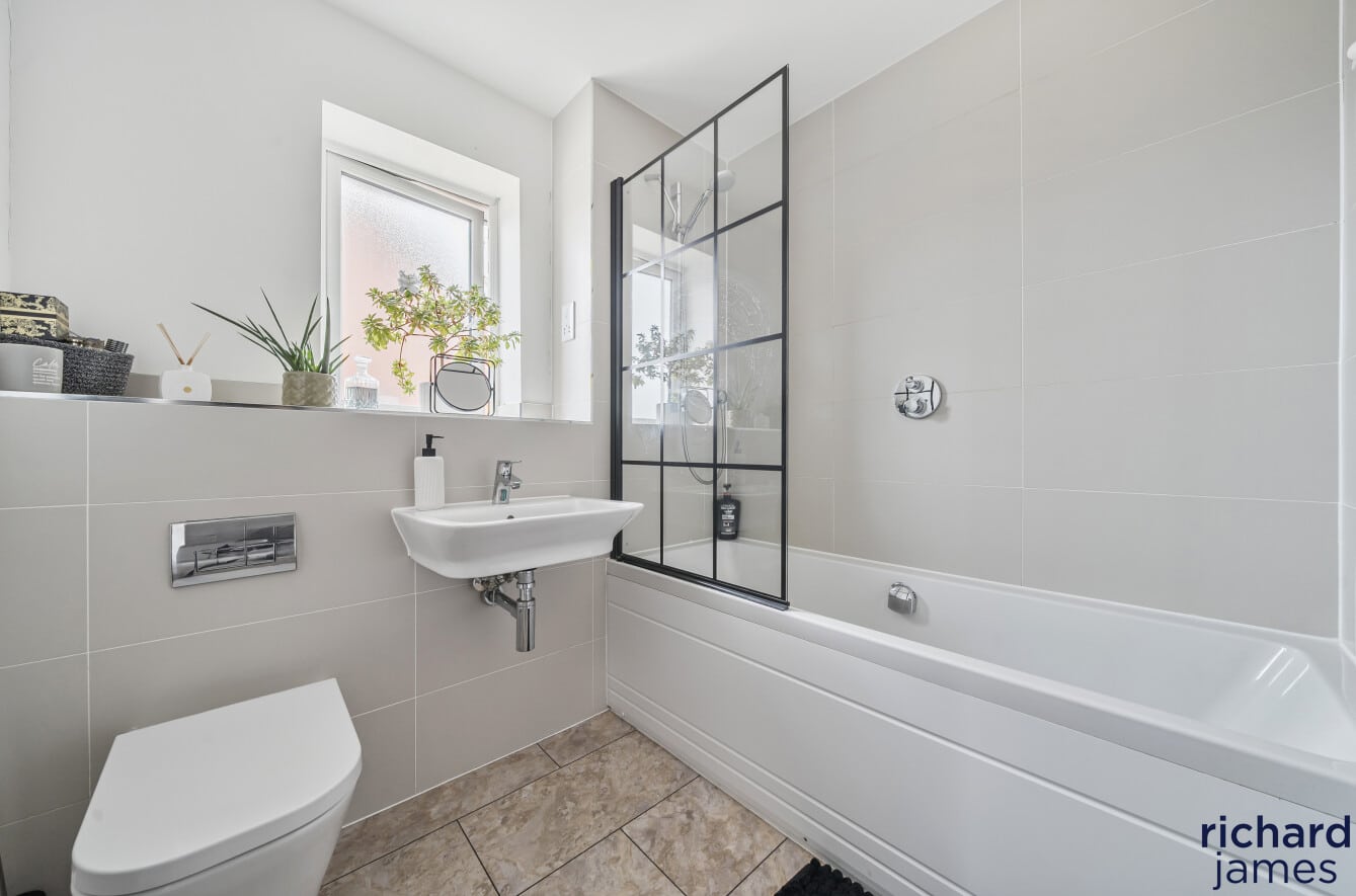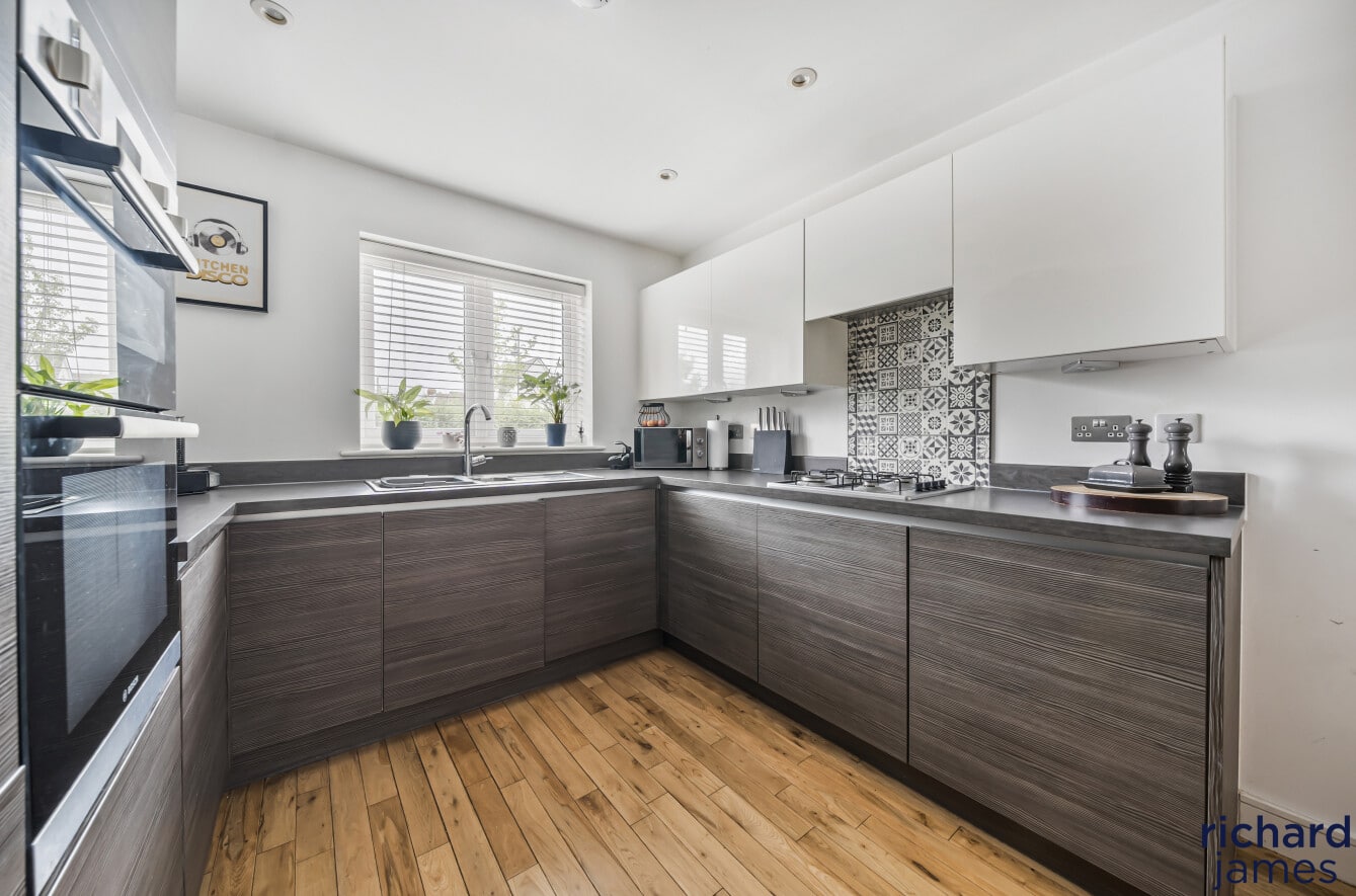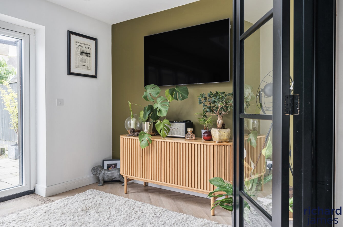 This immaculate property comprises; Entrance Hallway, Cloakroom, a large open plan Living/Dining area and Kitchen with all white goods, a media wall has also been installed with a feature evonic fire providing a real focal point to the room. There is a second reception room separated by crittal design doors allowing lots of lights through the home, this room further benefits from a sky lantern, bifold doors leading to the Garden and herringbone flooring. To the first floor are three good sized Bedrooms with the Master benefitting from built in wardrobes and an En-Suite and a family Bathroom.