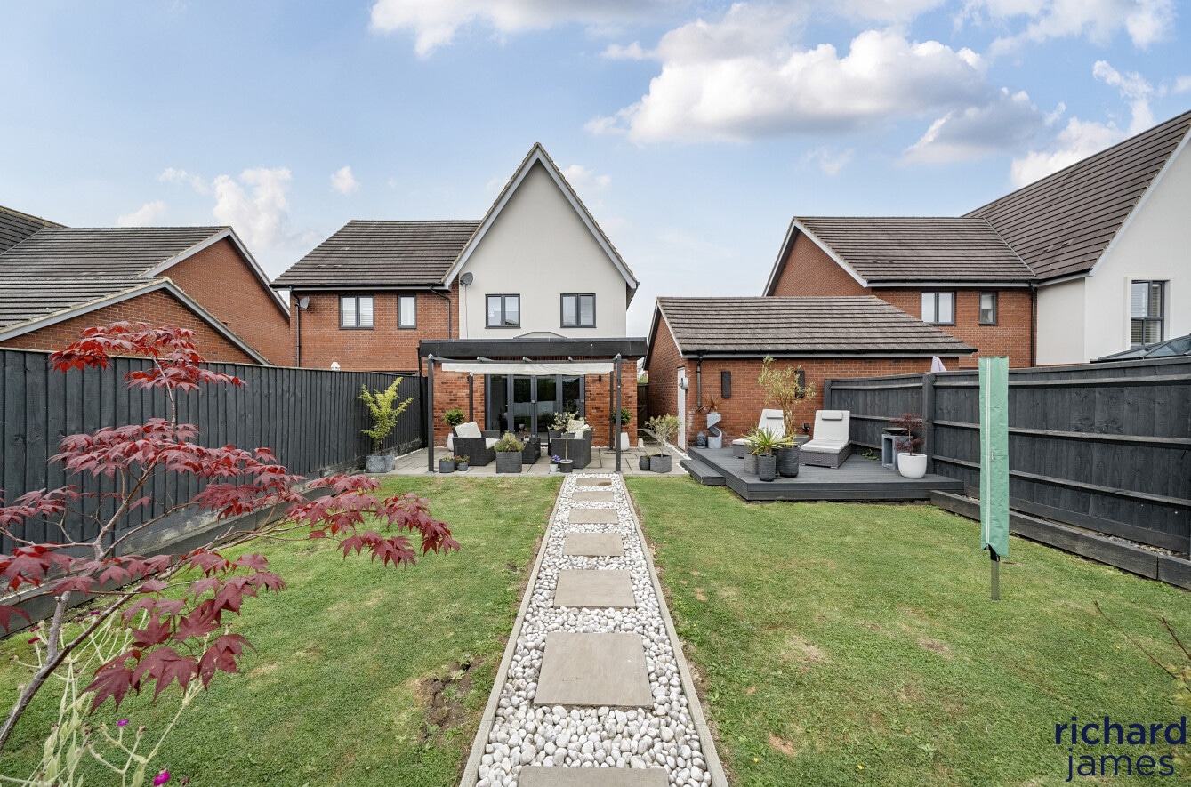 Externally there is driveway parking for 3 cars in front of the garage. The rear garden has been mainly landscaped with Indian sandstone paving along with a decked area and the walls have been built and rendered to home bamboo trees which provide privacy to the home.