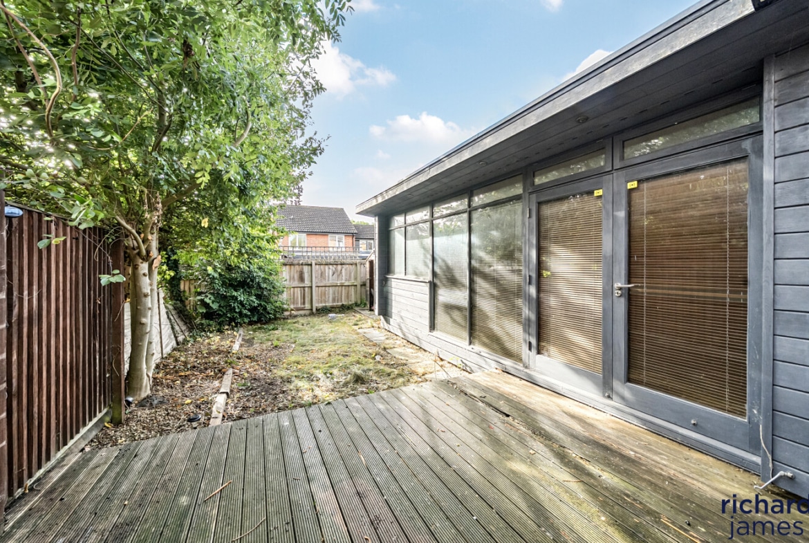 Externally, the property continues to impress with a private rear garden that elegantly mixes decking and lawn, offering a serene escape for relaxation or outdoor entertaining. A standout feature is the detached wooden lodge situated in the garden, perfect for a home office, studio, or hobby space, catering to the demands of contemporary living. Additionally, the property benefits from a driveway with space for two vehicles, ensuring parking is never a concern. Its location offers the best of both worlds, combining the peacefulness of suburban living with access to a range of local amenities. Residents can enjoy a day out at the nearby Lydiard Park, while also having easy access to shops, schools, a bowling alley, and a cinema. With excellent road links, this home is ideally located for commuters and families alike.