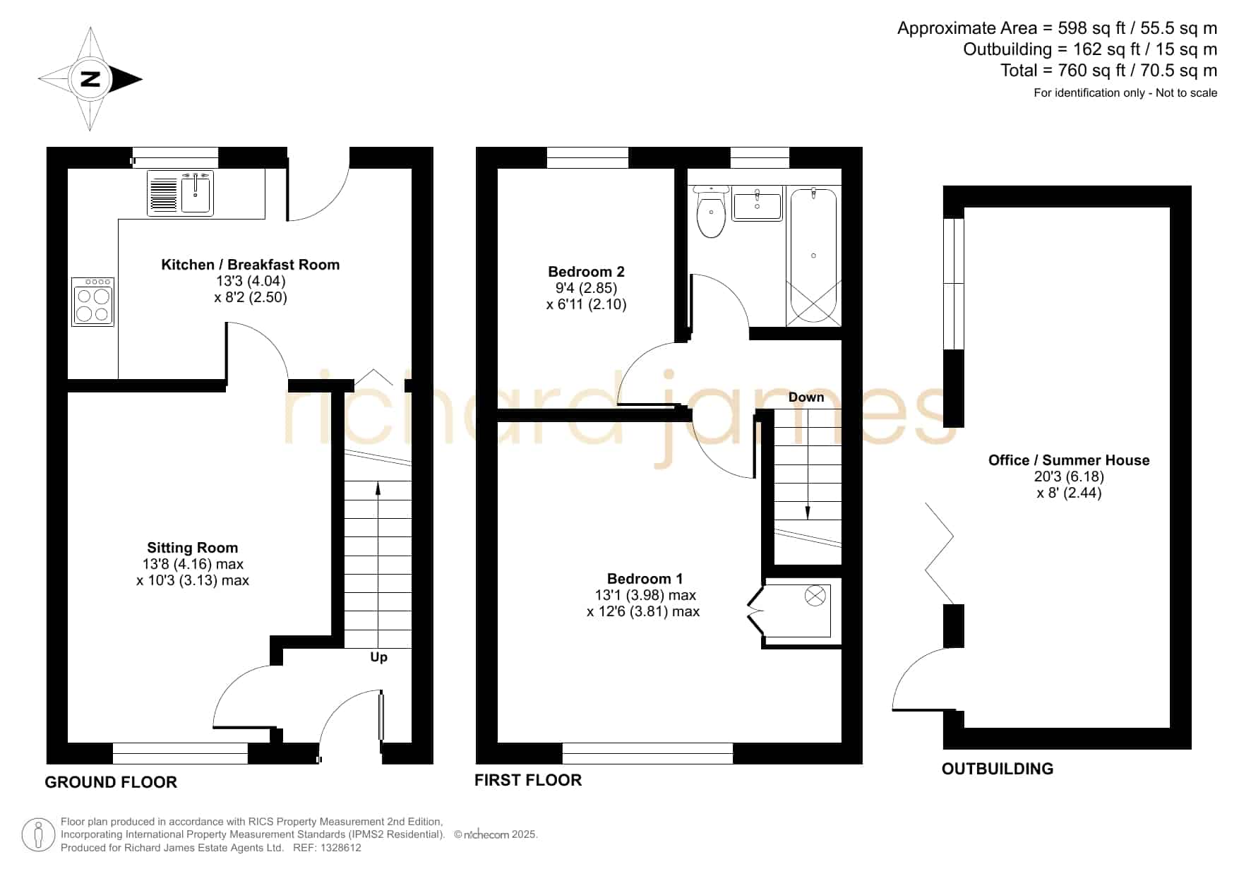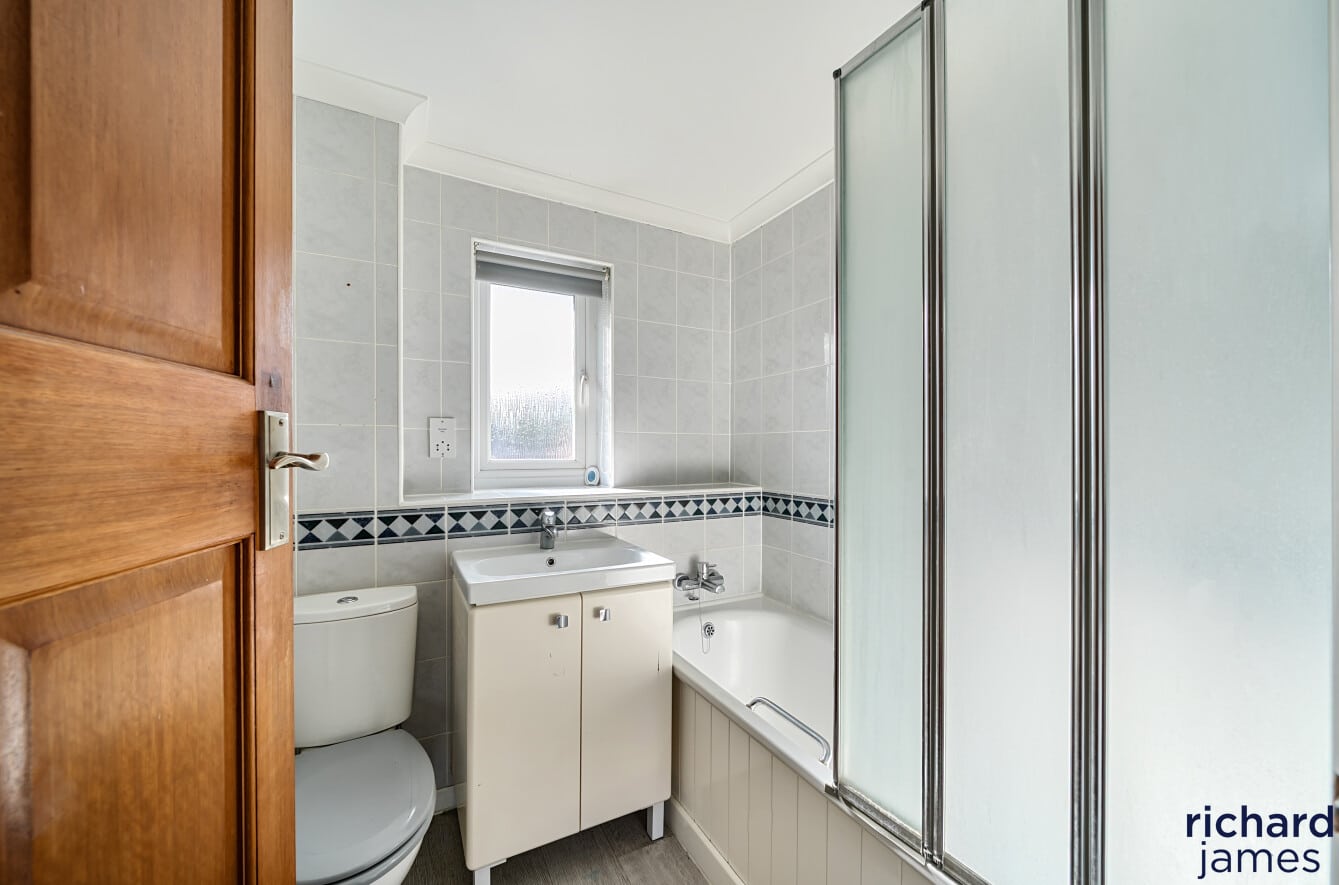 The first floor boasts two well-proportioned bedrooms, with bedroom one featuring built-in cupboard space, providing convenient storage solutions. The remaining bedroom, equally accommodating, serves as a versatile space, whether as a guest room or a dedicated home office. The property further benefits from a modern bathroom, ensuring a comfortable and functional living environment.