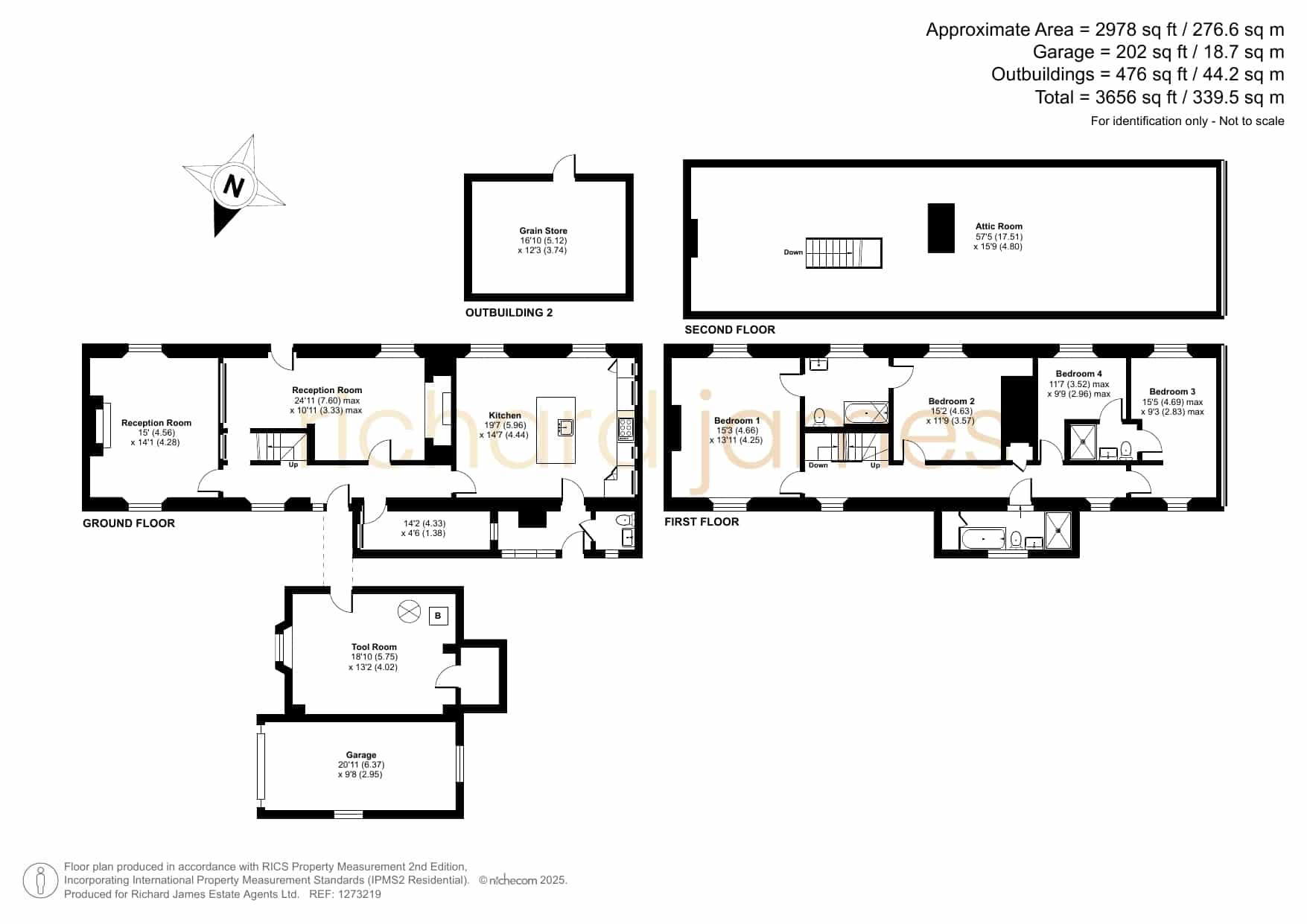 To the rear: Garage and two stone and brick built outbuildings currently used for storage but have the potential to be utilised in a multiple of uses (subject to planning). Lawns, mature trees and ample parking