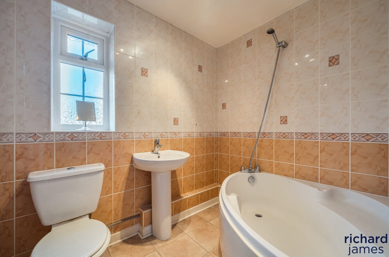 The property benefits from both a main bathroom and an additional shower room, providing flexibility for busy households. Outside, you’ll find driveway parking for up to two vehicles along with a single garage for secure storage. The rear garden is larger than average and fully enclosed, offering a peaceful retreat with gated access, a recently laid patio area, and a well-maintained lawn—ideal for relaxing or hosting guests.