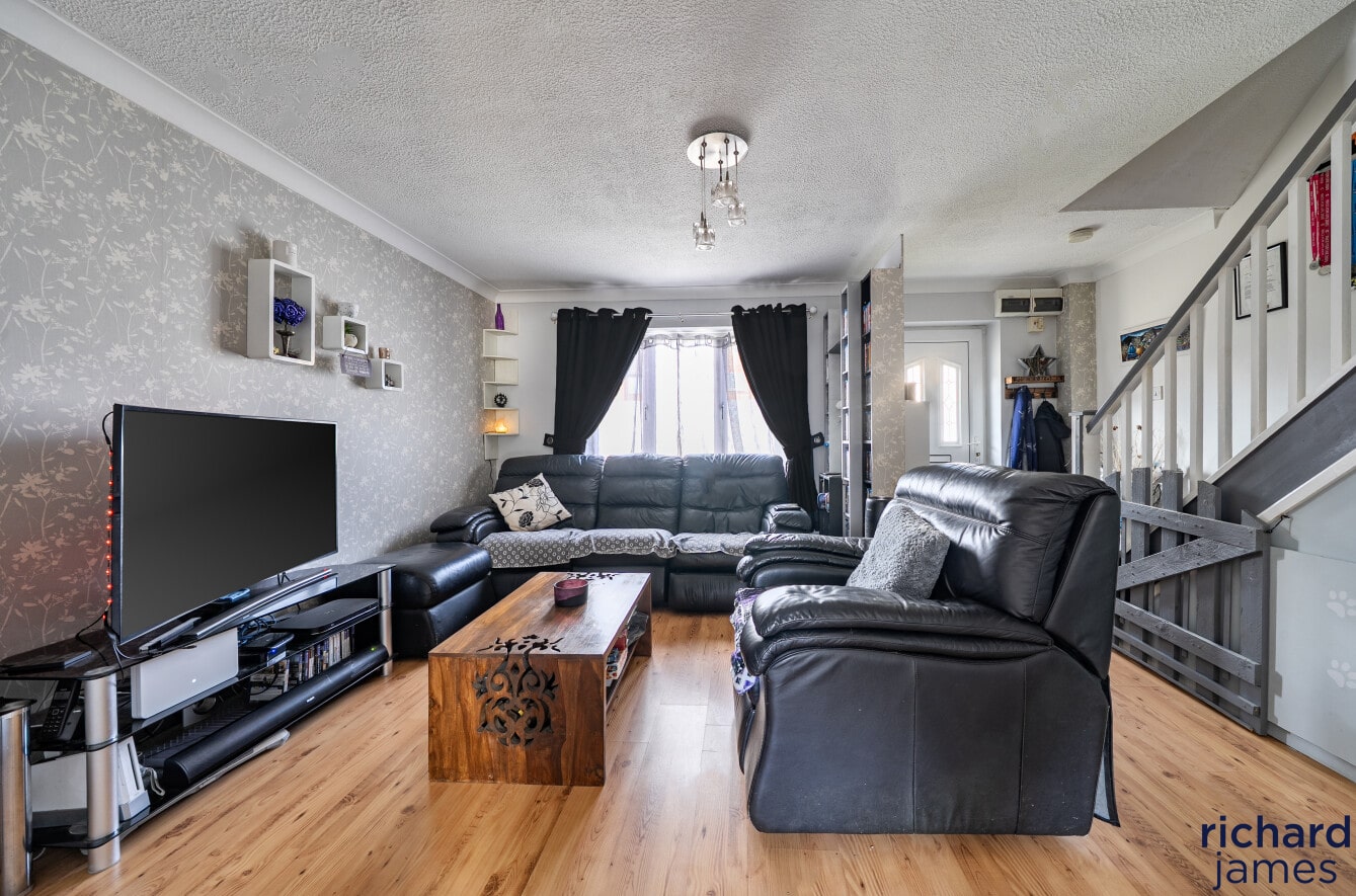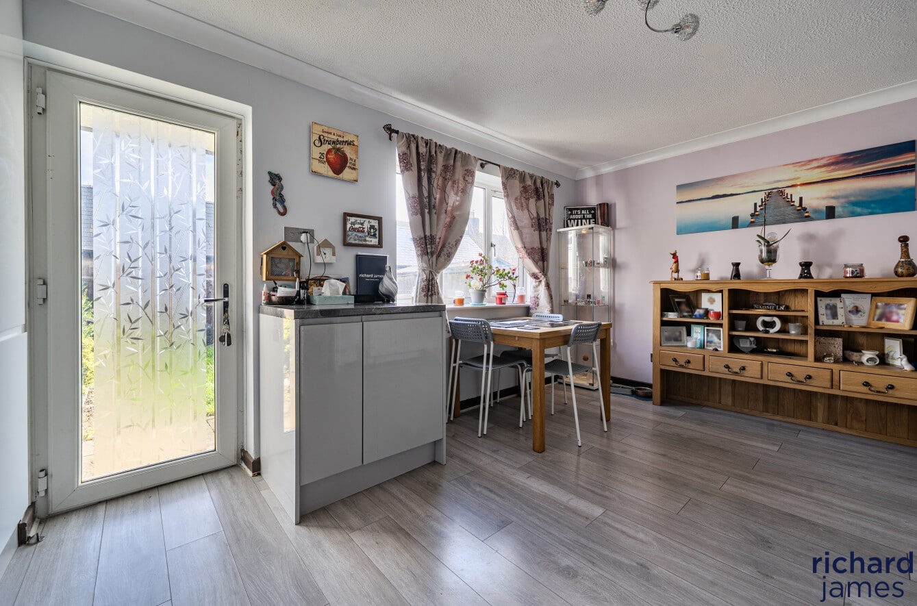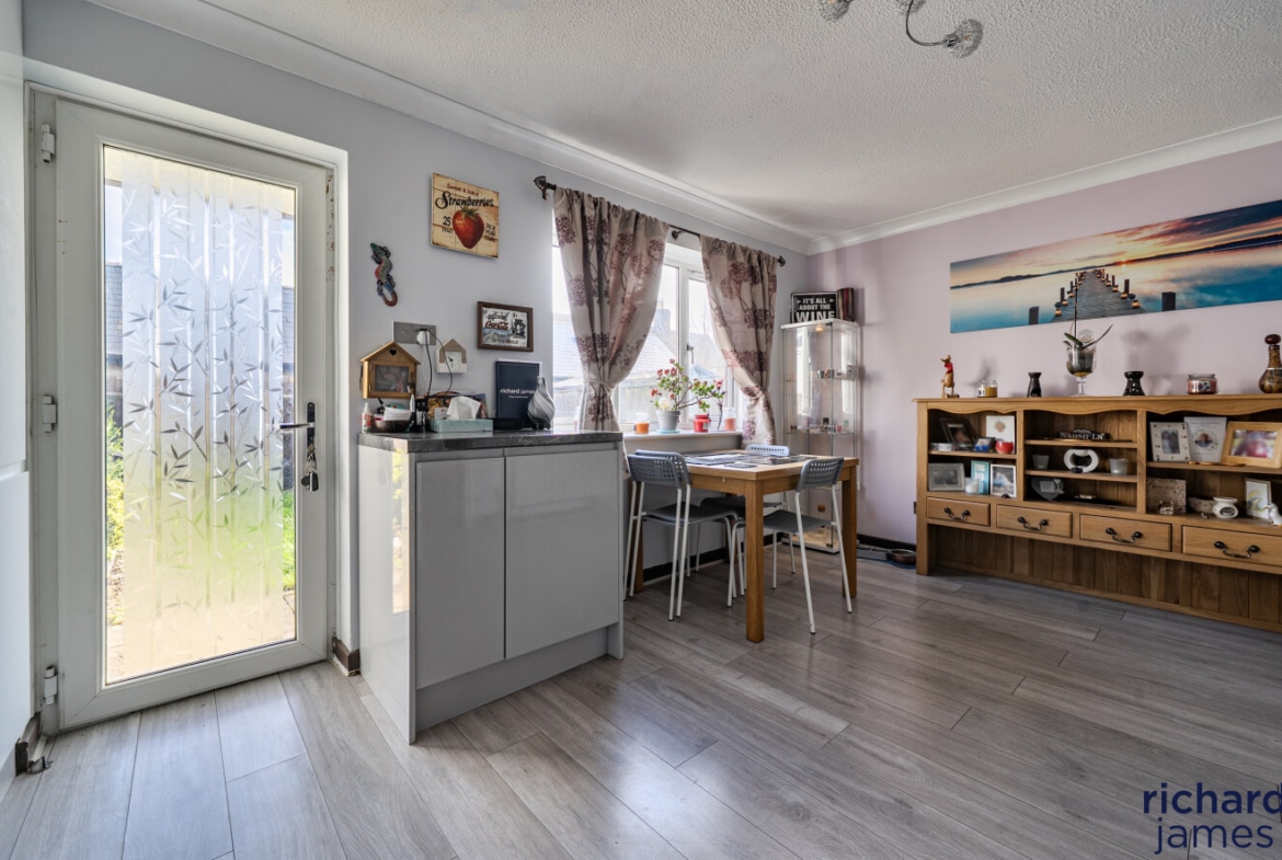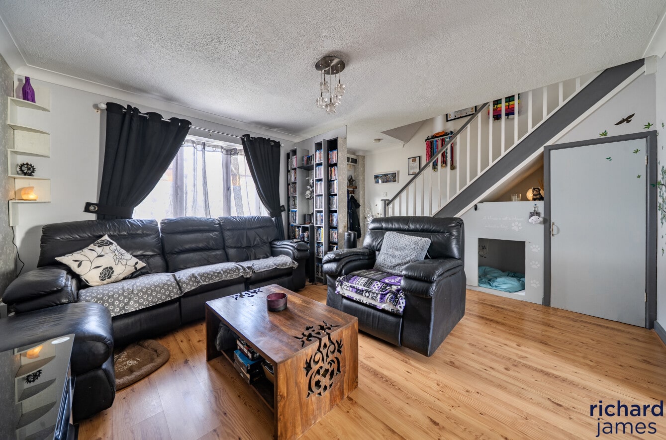 Three-bedroom family home in the popular Bakers Field area of Lyneham, featuring a spacious lounge and modern kitchen/diner with direct access to a private, sunny rear garden laid to lawn. Upstairs offers two double bedrooms, a single bedroom, and a contemporary bathroom. Further benefits include two allocated parking spaces and a convenient location close to local amenities.