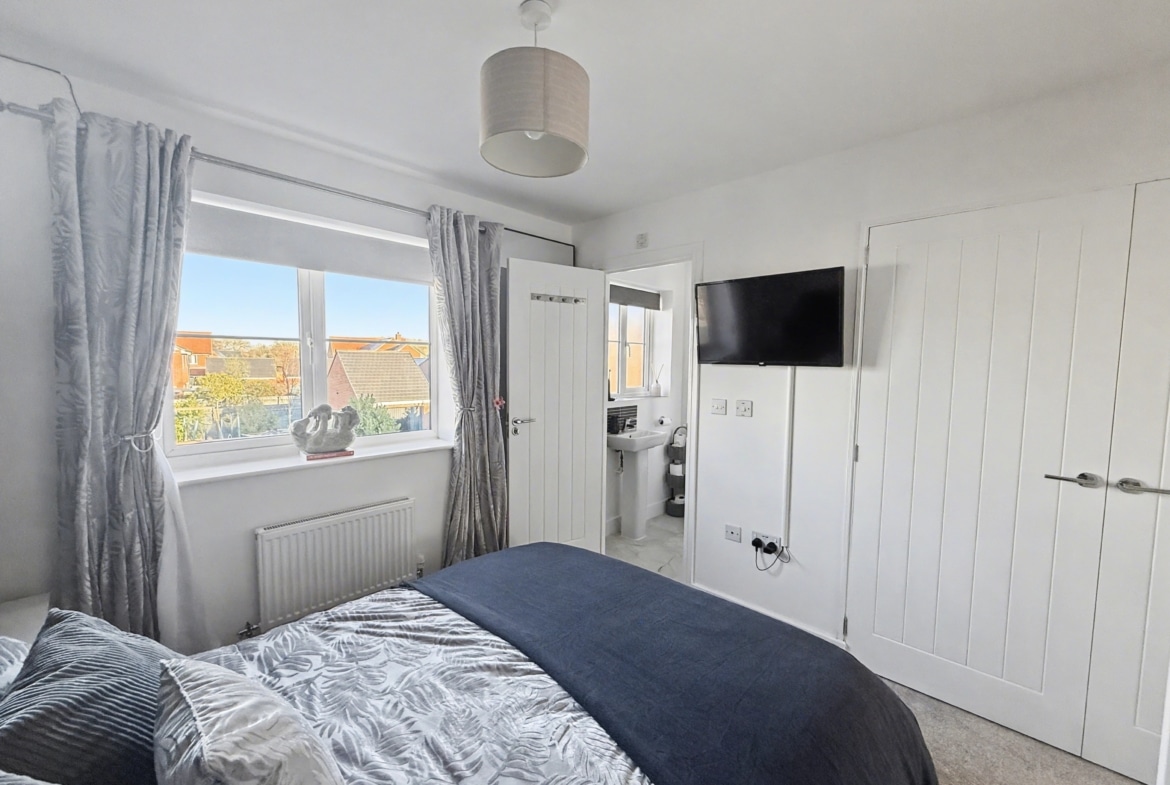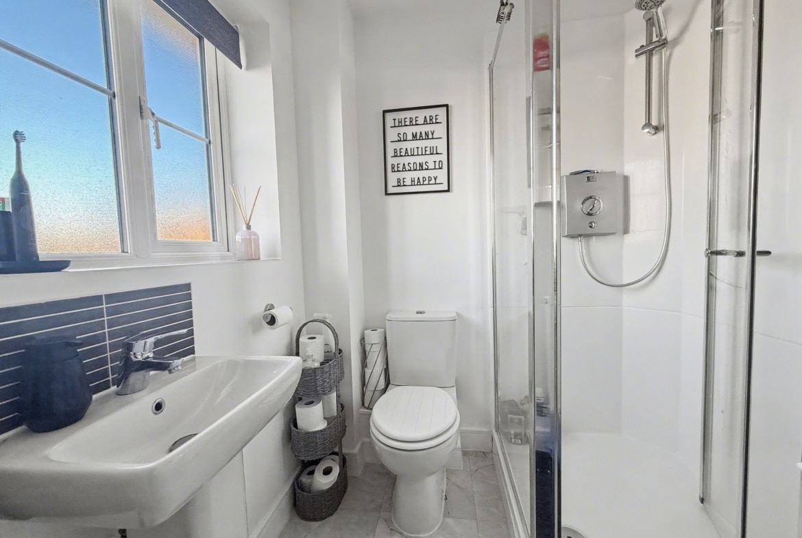 Ascending to the first floor, a well-appointed landing leads to three generously proportioned double bedrooms and the family bathroom. The master suite is a haven of comfort, complete with an ensuite shower room, offering a private sanctuary for rejuvenation.