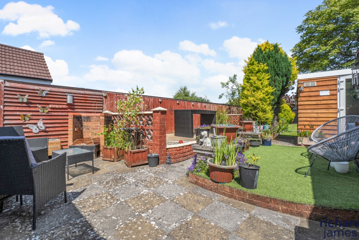 Outside are enclosed gardens, garage and driveway parking.