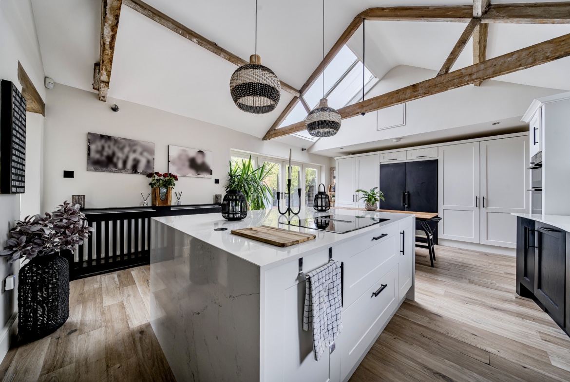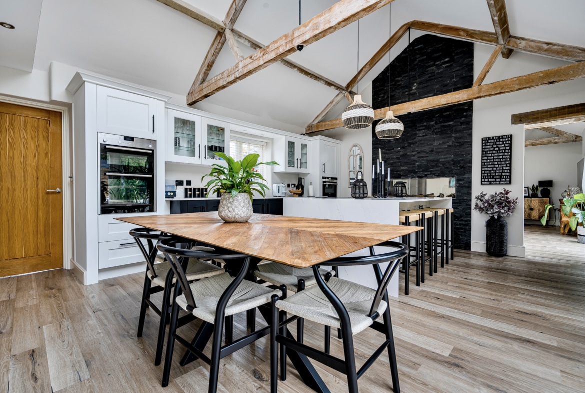 *NO CHAIN* Set behind electric wooden gates, Meadow Barn is a delightful and secluded residence offering exceptional presentation throughout, located in the highly sought-after market town of Cricklade. This beautifully appointed home features a stunning 20ft kitchen/breakfast room with a vaulted ceiling, flowing seamlessly into an elegant living room with a stylish two-sided contemporary fireplace.