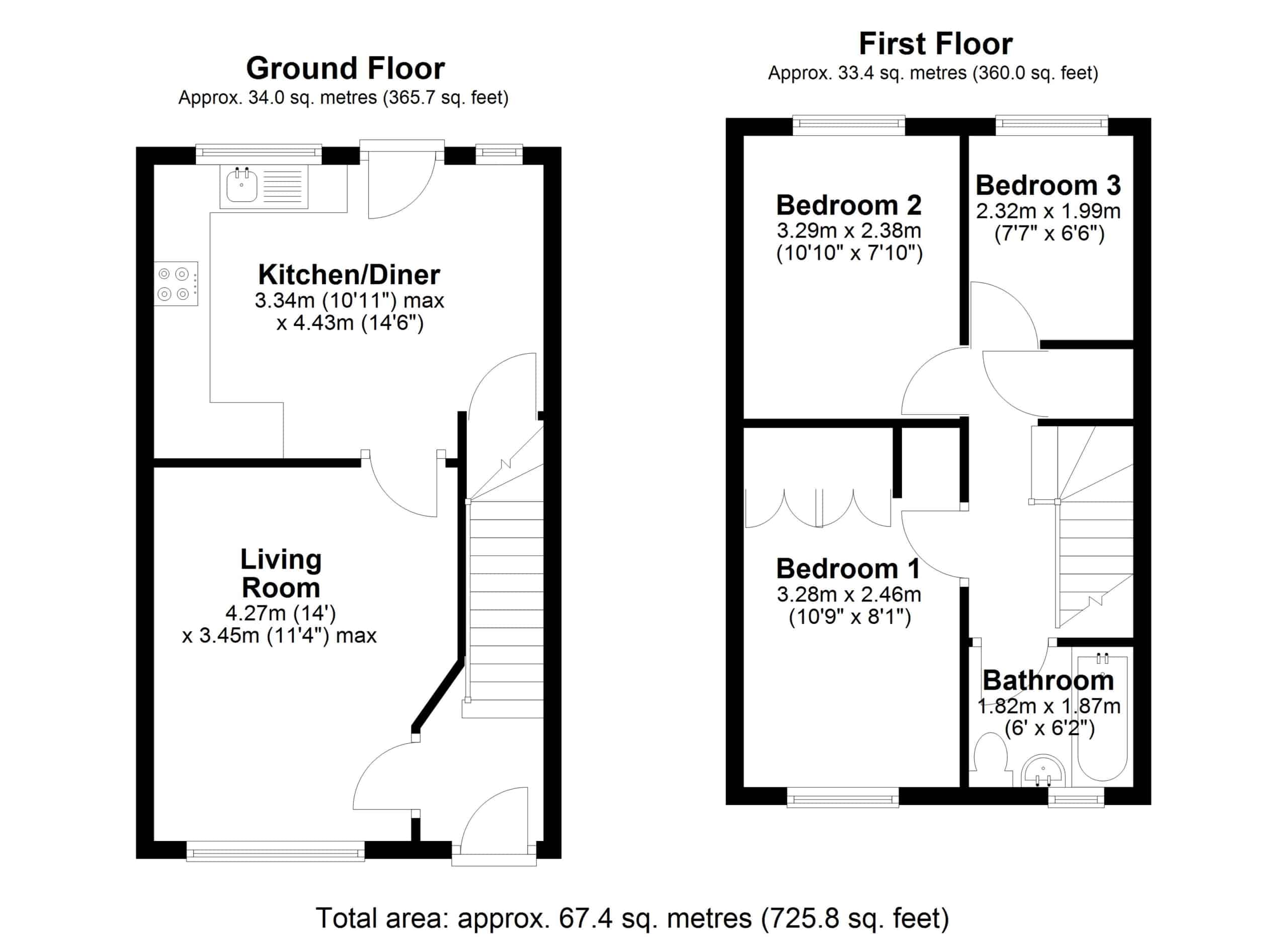 Upstairs, there are two DOUBLE bedrooms and a single bedroom, family bathroom with shower over bath and a storage cupboard.