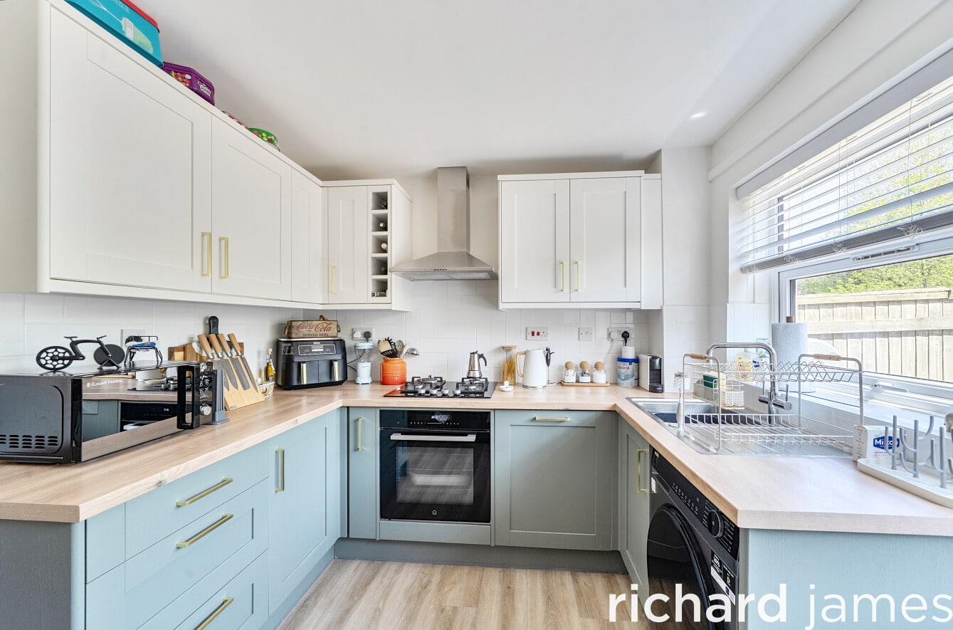 Step inside and you are welcomed by a generous reception room, a bright and versatile space that works effortlessly for both relaxing evenings and entertaining friends. To the rear, a modern kitchen and dining area provides a sleek and functional setting, with plenty of storage and workspace for everyday living.
