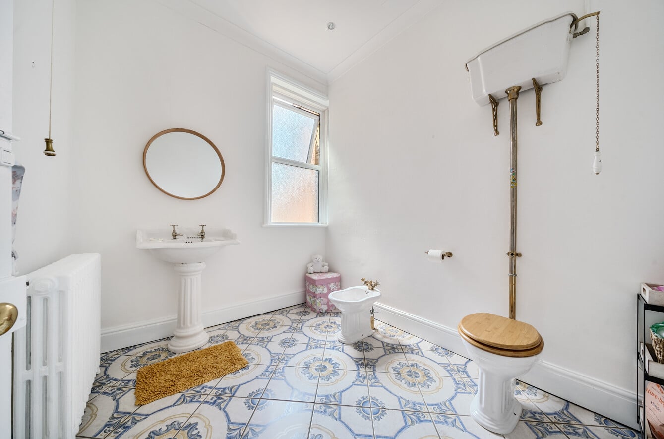 The generous accommodation is laid out over four floors and includes: Entrance Vestibule, impressive Hallway with elegant staircase rising to the floors, 38′ Sitting Room with bay window which opens to the Family Room, Dining Room with exposed chimney breast which opens into the stunning bespoke fitted Kitchen/Breakfast Room with integrated appliances and range cooker, and doors opening into the Rear Garden. As well as, a separate Utility Room and Cloakroom. The Cellar has also been converted to a Salon, but could be used for a number of other purposes and has its own access.