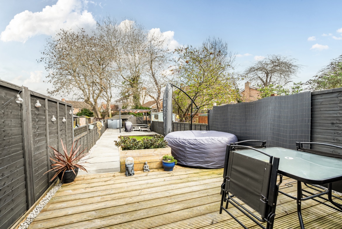 Externally, the rear garden has been landscaped to provide a low-maintenance outdoor space, with a practical layout suited to general use throughout the year.