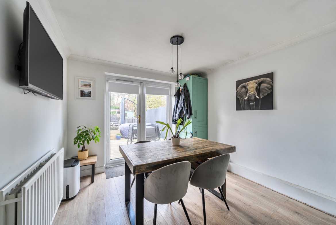 An extended two-bedroom home on Bayleaf Avenue offering well-balanced accommodation across two floors. The property includes a rear extension creating a separate dining area, a recently refitted bathroom, and a landscaped rear garden designed for low maintenance. Additional features include a front reception room, kitchen leading through to the dining space, and two bedrooms on the first floor. Positioned within an established residential area with access to local amenities, schools, and transport links.