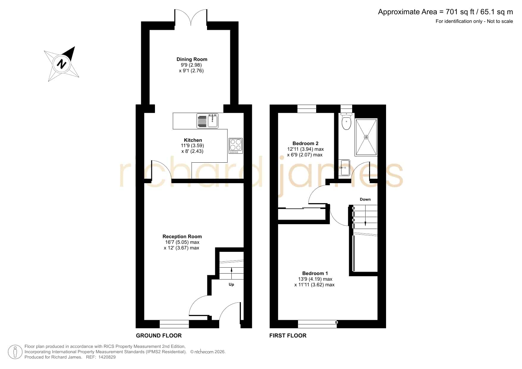 On the first floor, there are two bedrooms, including a larger principal room and a second bedroom suitable for a range of uses such as a guest room, nursery, or home office. The bathroom has been recently refitted and includes modern fixtures and fittings.