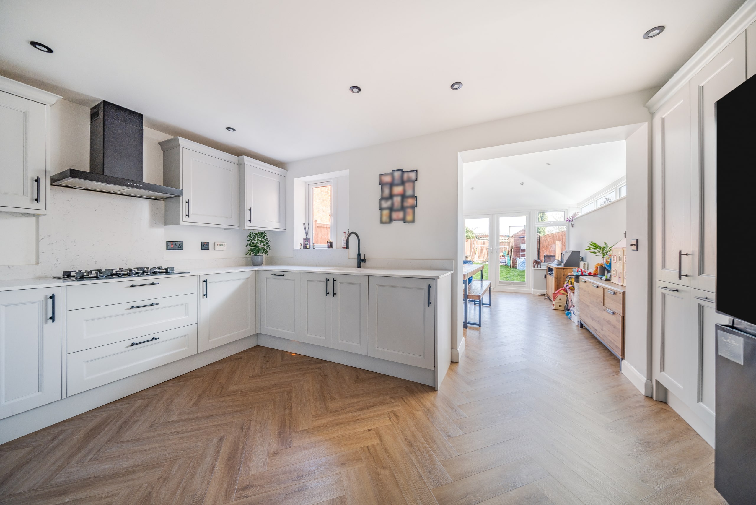 Nestled in a highly sought-after estate on the outskirts of North Swindon, this beautifully presented four-bedroom semi-detached home offers a perfect blend of modern living and convenience. From the moment you step through the entrance hall, you’ll be greeted by the seamless integration of style and functionality. Downstairs, the spacious living area boasts elegant herringbone flooring, providing a warm and inviting ambience ideal for both relaxation and entertaining. The heart of the home is undoubtedly the stunning refitted kitchen, which effortlessly flows into a generous conservatory, creating a light-filled space for family gatherings and casual dining. A convenient WC completes the ground floor.
