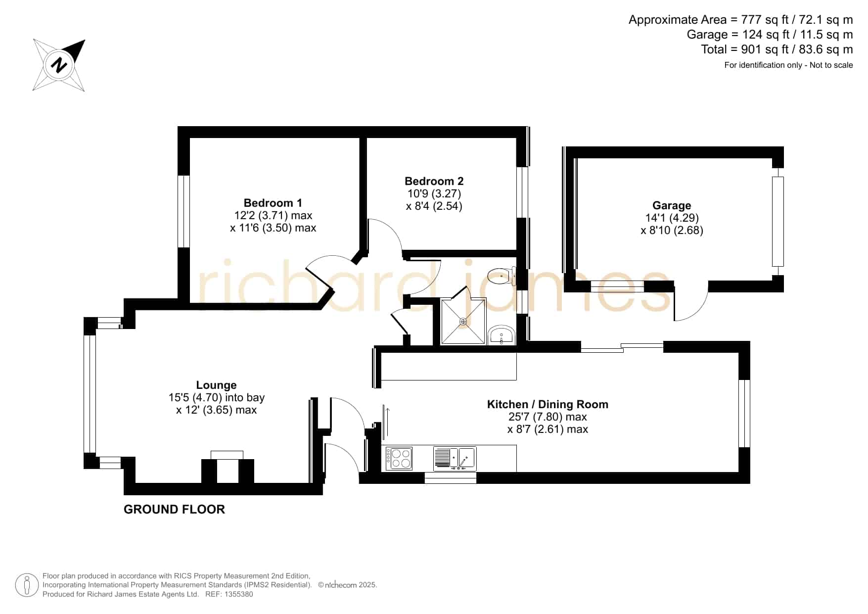 The accommodation briefly comprises an entrance hall, living room with a bay window, a kitchen/dining room, two bedrooms, and a bathroom. Externally, the property benefits from driveway parking leading to a garage, as well as an enclosed garden.