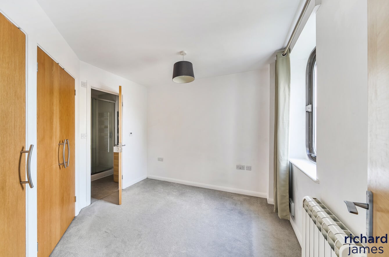 The accommodation comprises a communal entrance hall with a secure entry system and staircase to the first floor. The front door opens into a spacious 19’ open-plan living room, featuring a dual aspect and seamlessly connecting to a well-equipped modern kitchen with integrated appliances. A lobby area leads to two generous double bedrooms and a contemporary bathroom fitted with a white suite and separate shower over the bath.