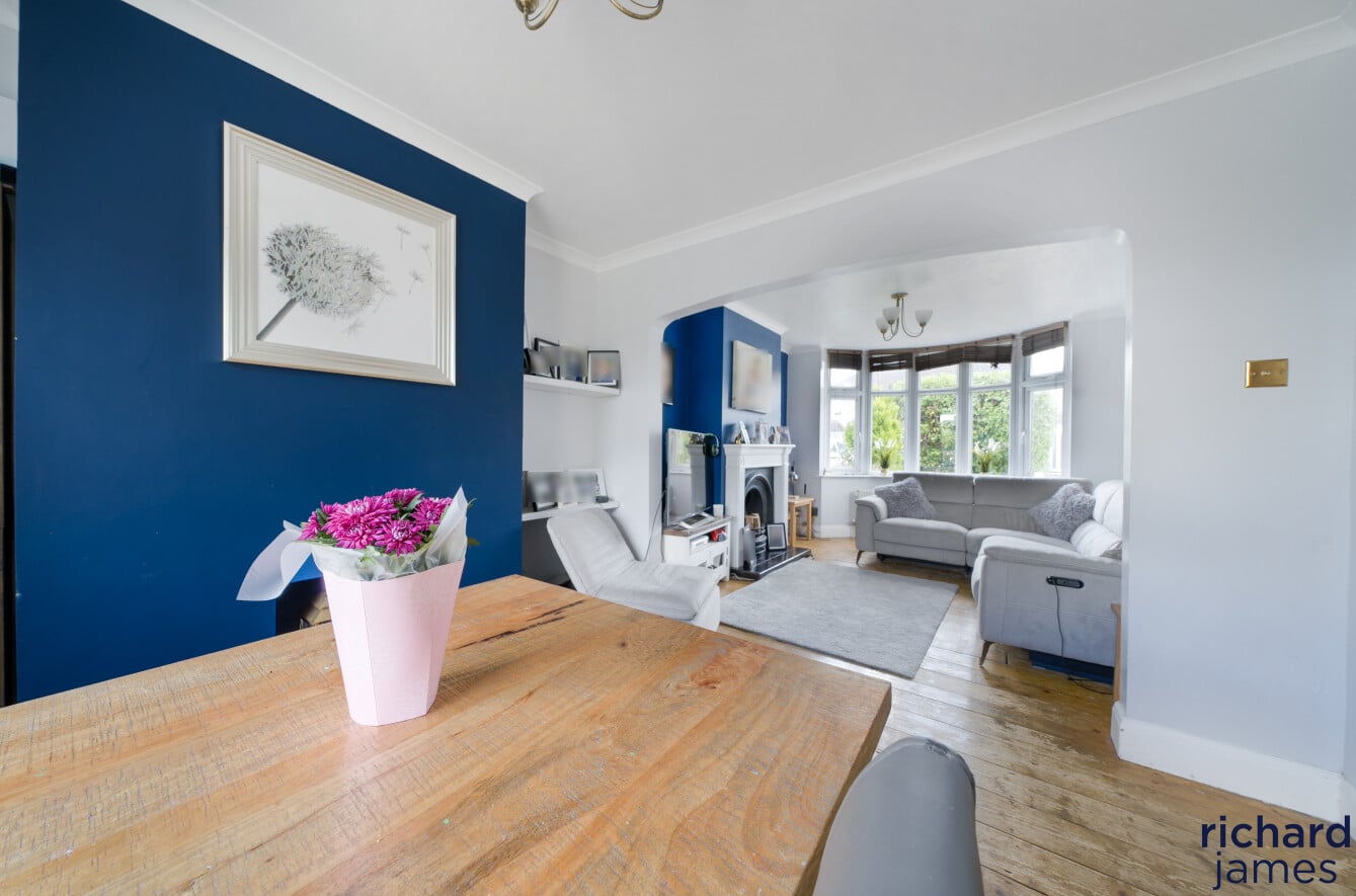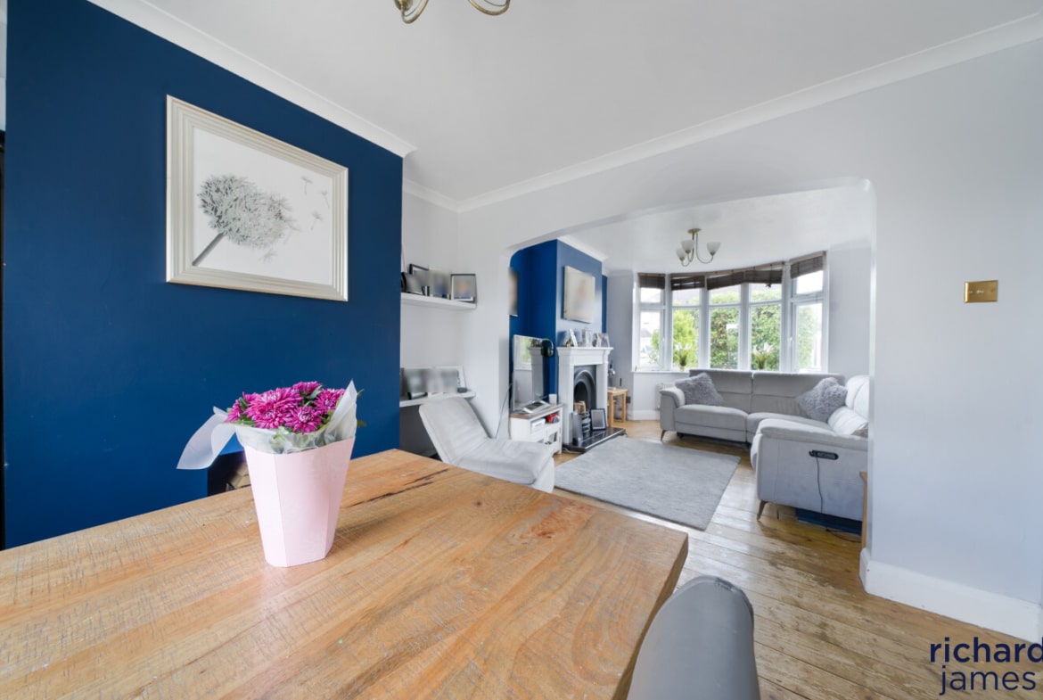 The ground floor living accommodation comprises; Entrance porch, entrance hall, a bay fronted living room which is open plan to the dining room and a modern kitchen.