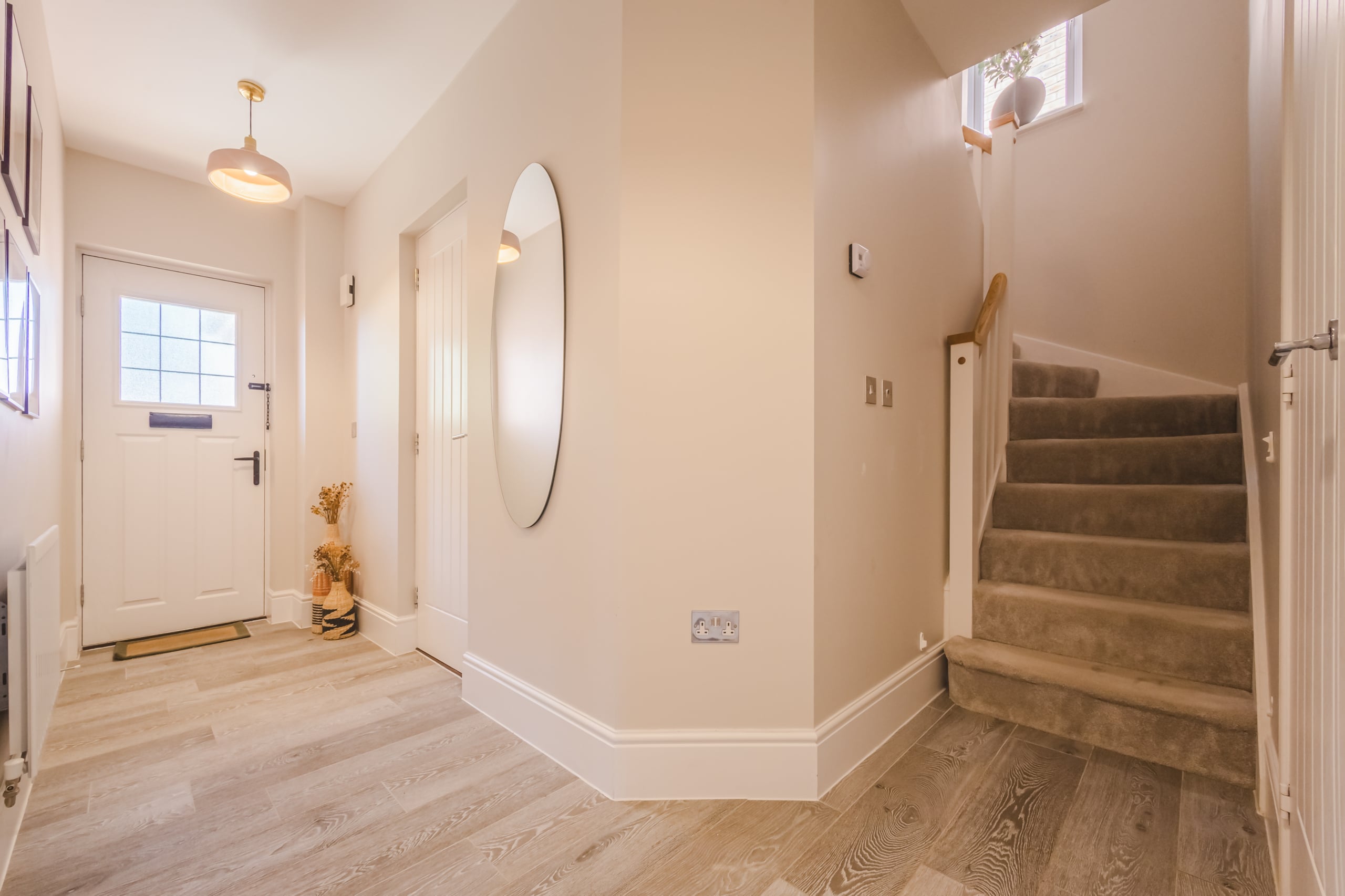 Upstairs comprises four generously sized bedrooms, the master bedroom boasts built-in wardrobes and an ensuite shower room. A well appointed family bathroom serves the remaining bedrooms, all of which are tastefully finished and well proportioned to accommodate growing families or guests.