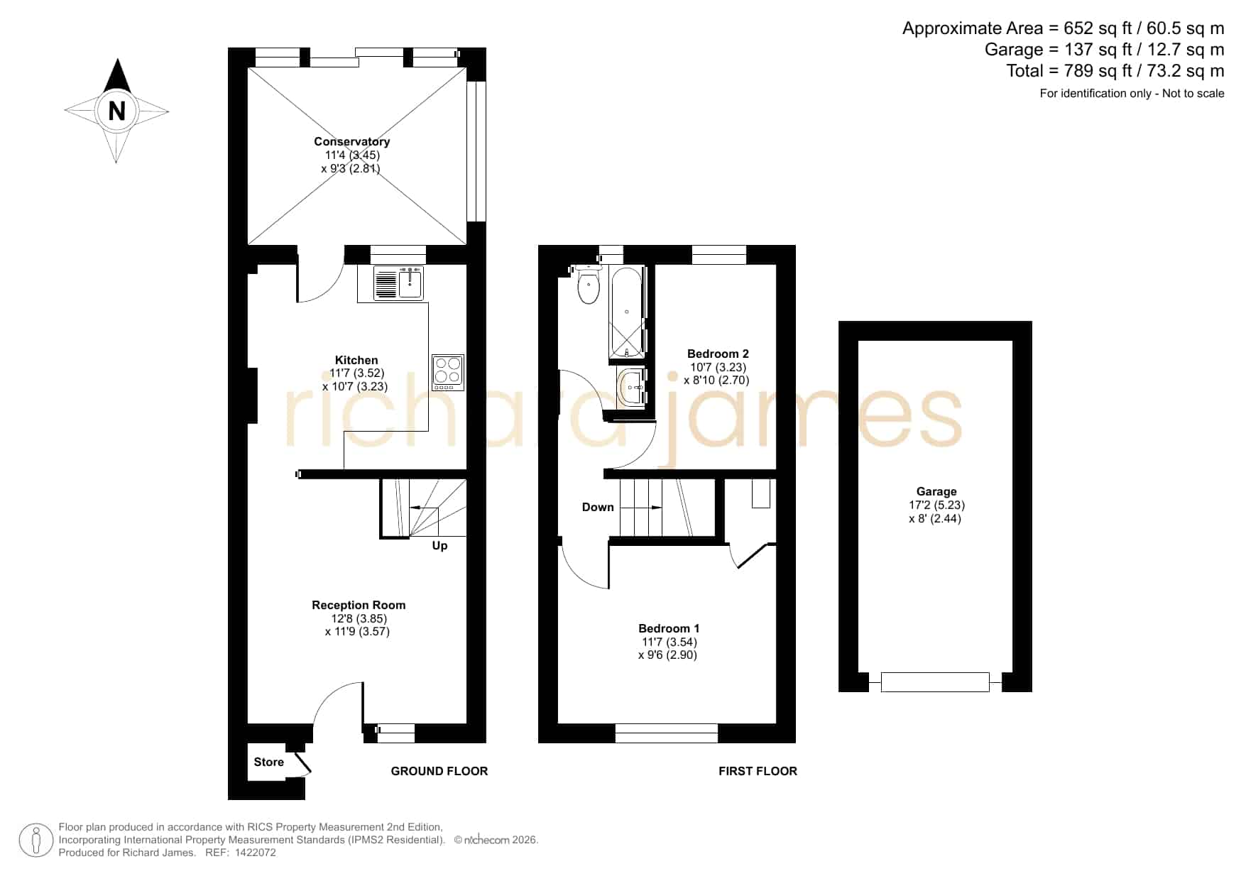 Stepping into the private garden, you’ll discover patio area, ideal for alfresco dining and summer gatherings with friends. The garden extends to a grassy area, with a seating spot at the far end, perfect for soaking in the tranquillity or enjoying a family barbecue. For those seeking additional storage or vehicle protection, the property comes complete with a convenient garage. There is also rear access to the garden, making this a practical arrangement for busy lifestyles.