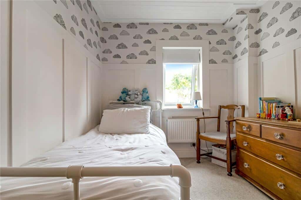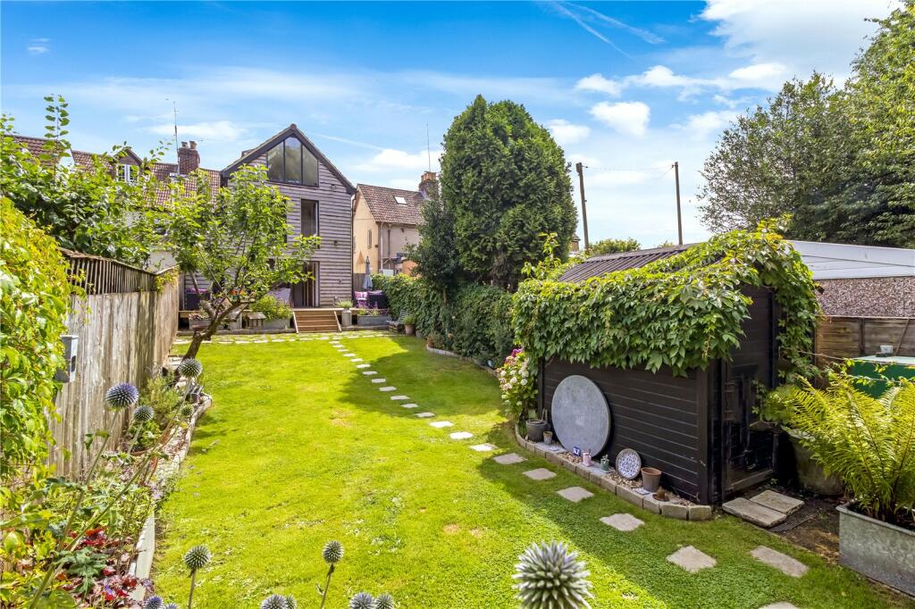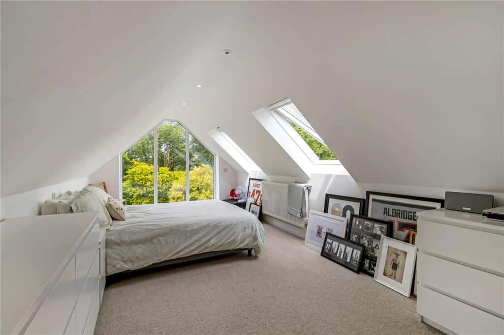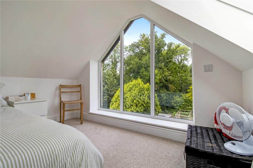 The top floor is dedicated to a spacious master bedroom extending the full length of the property, complete with a large picture window overlooking the garden. An adjoining partially converted room with a Velux window offers excellent potential for an en-suite bathroom.