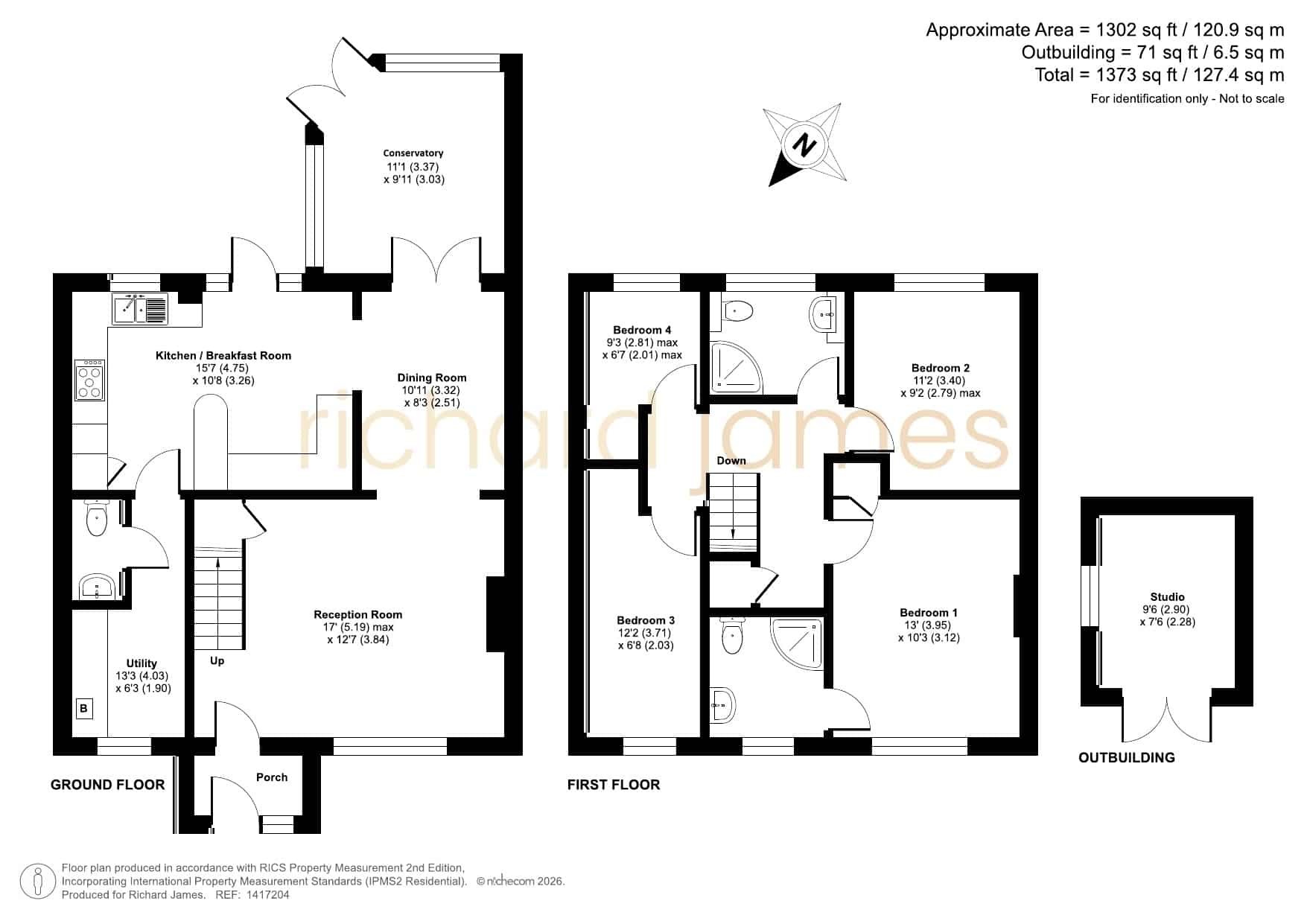 Upstairs, the property offers four bedrooms, three of which are generous doubles, along with a well proportioned single bedroom. The master bedroom benefits from a contemporary en-suite shower room, while the main family bathroom is equally impressive and features a modern suite with a double shower.