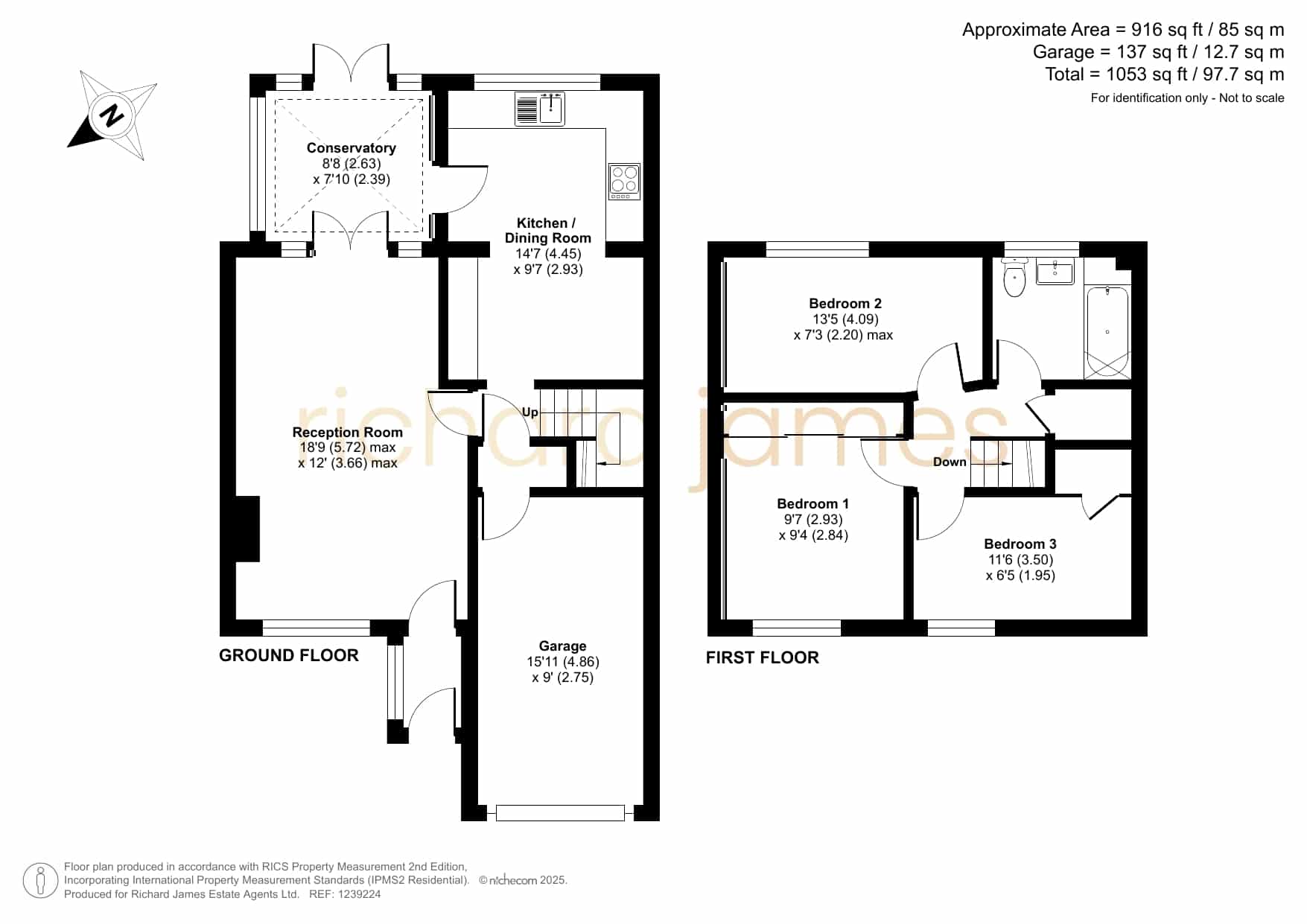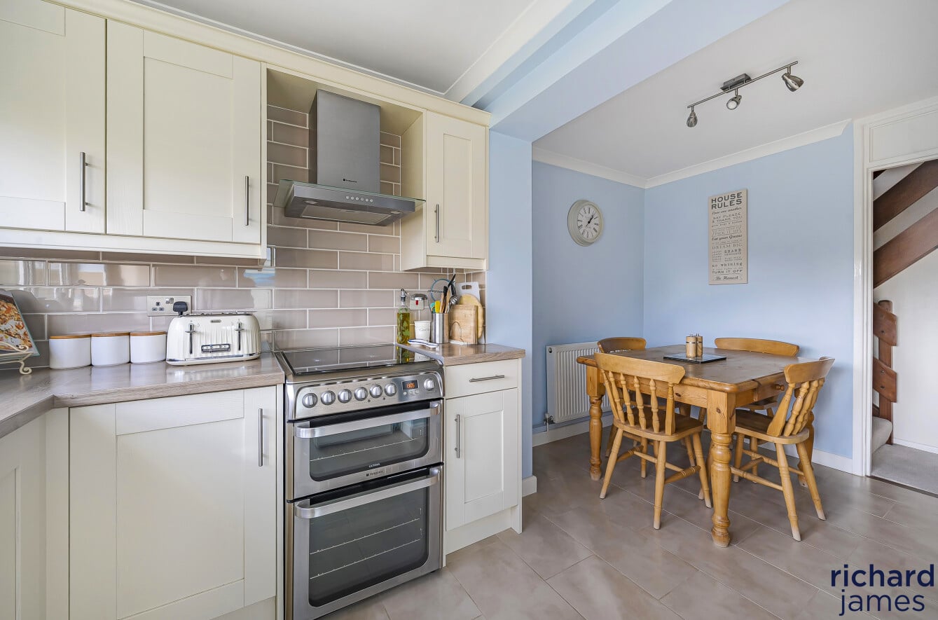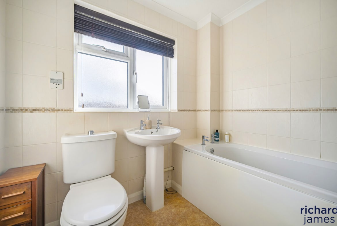 Upstairs, you’ll find three well-proportioned double bedrooms, including a second bedroom with built-in storage and a third with a convenient storage cupboard. The family bathroom completes the first floor, offering a modern and practical layout.