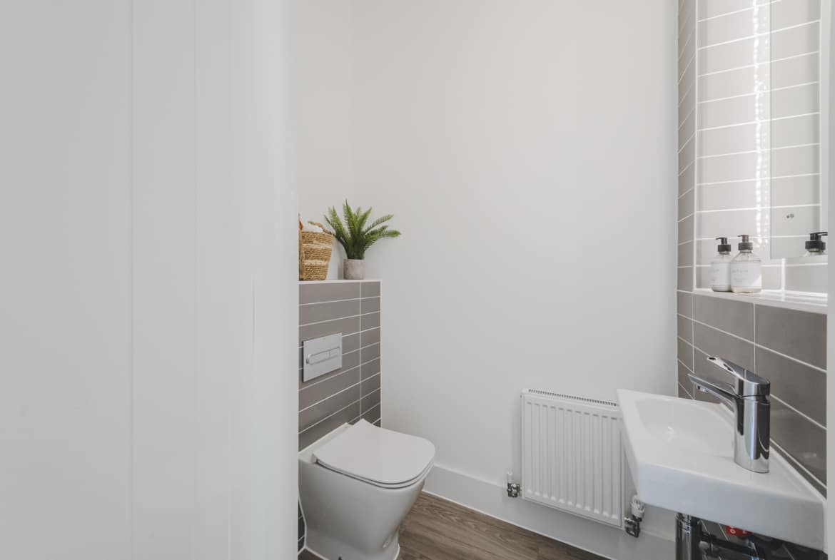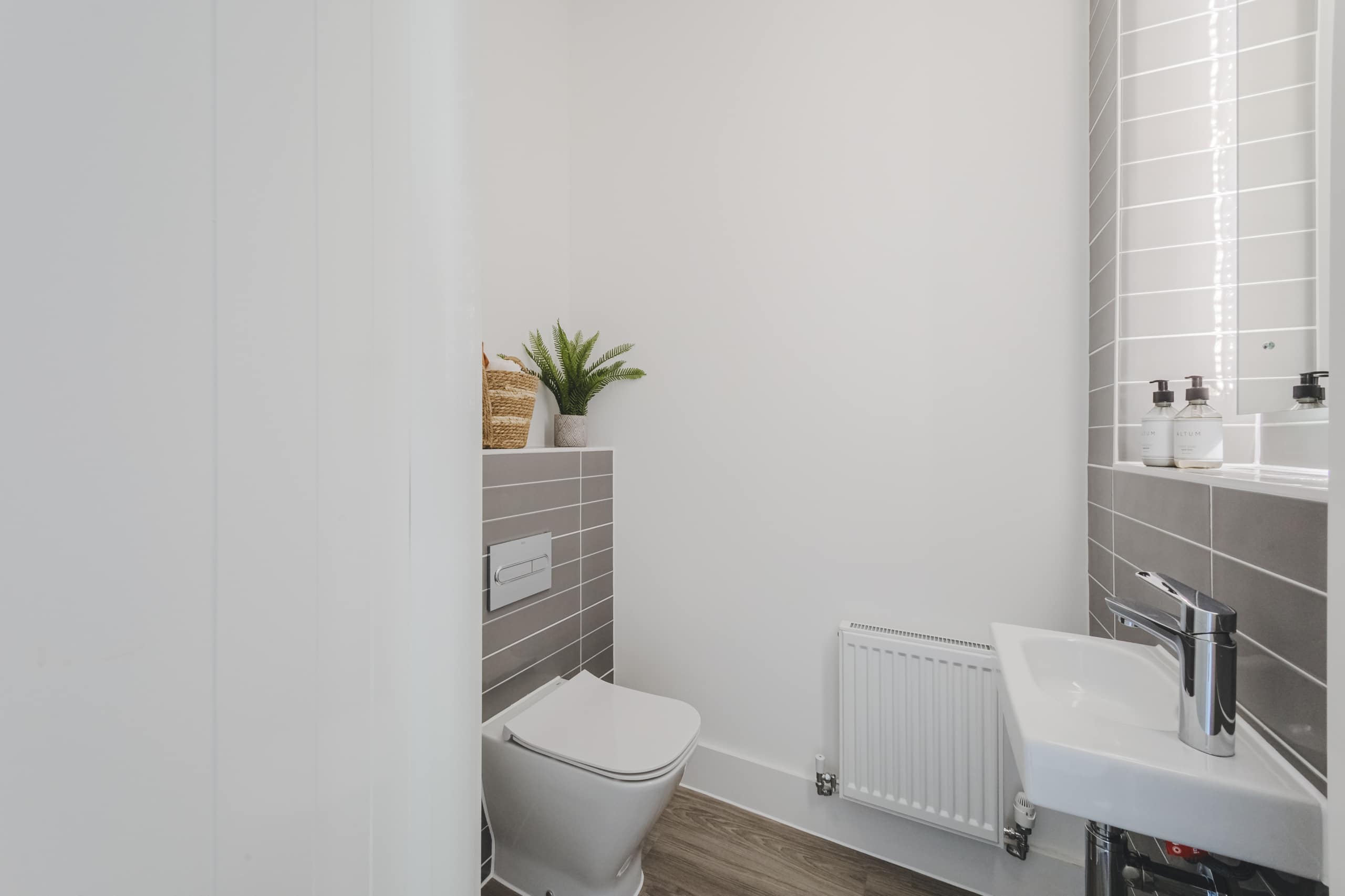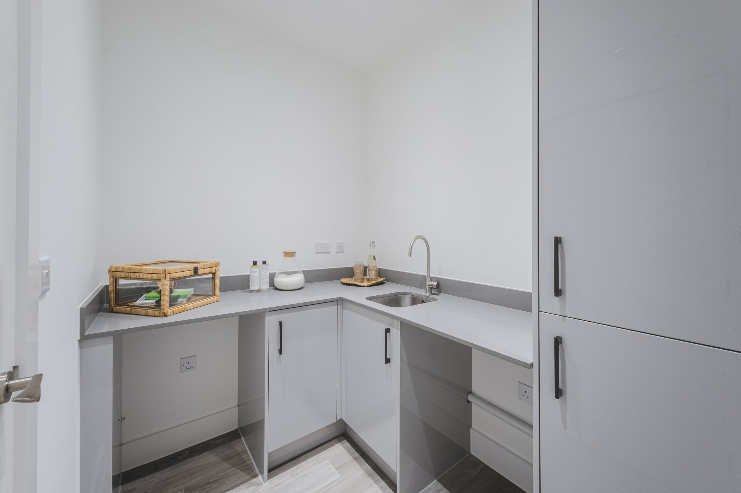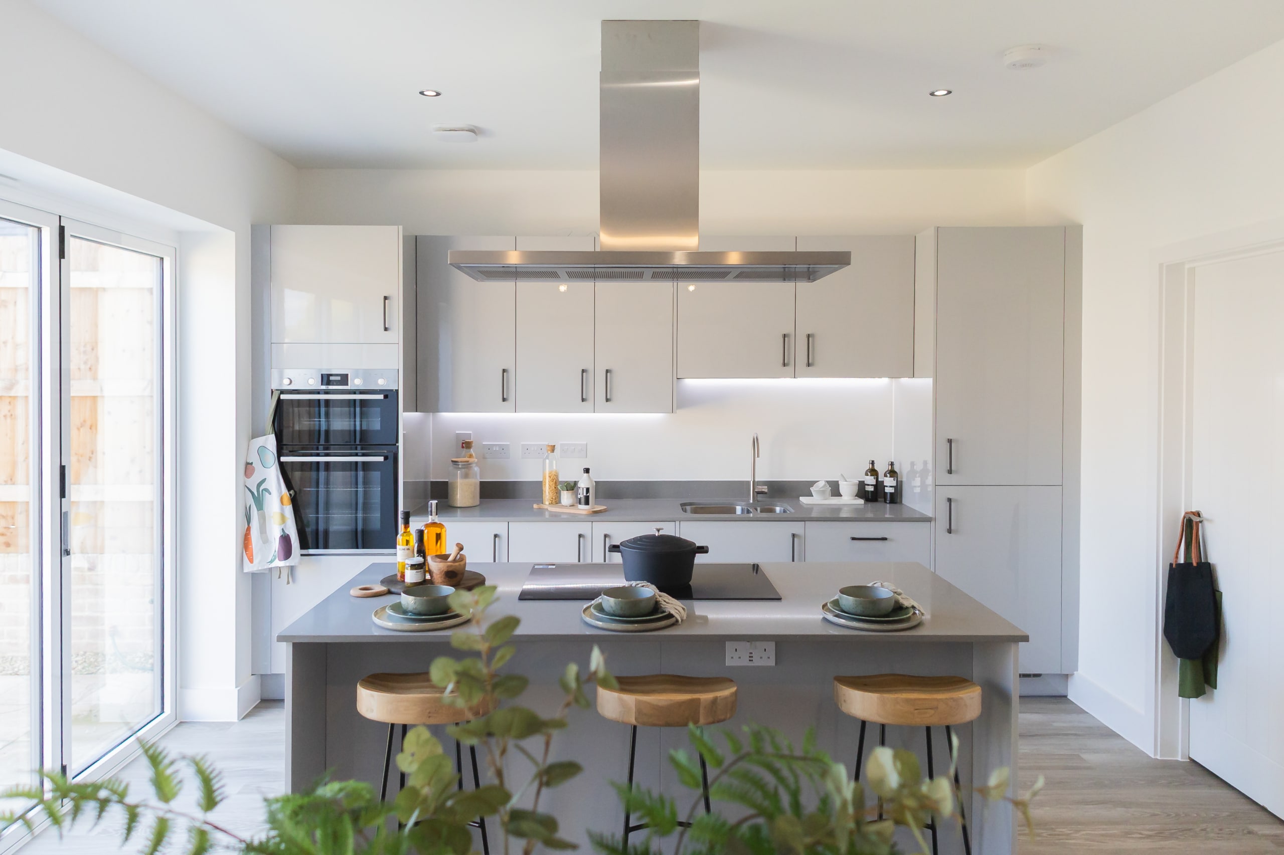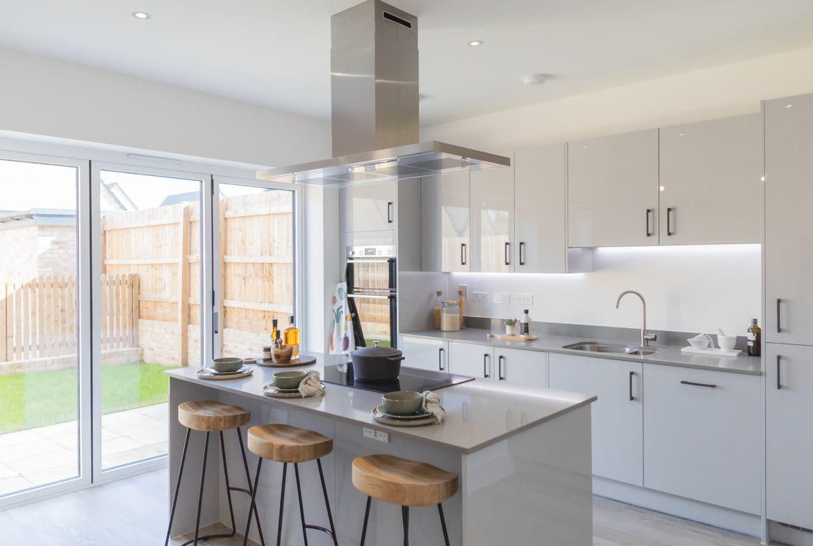 This home consists of an open-plan kitchen/dining area with bi-folding doors to the garden, as well as a separate utility room and living room downstairs.
