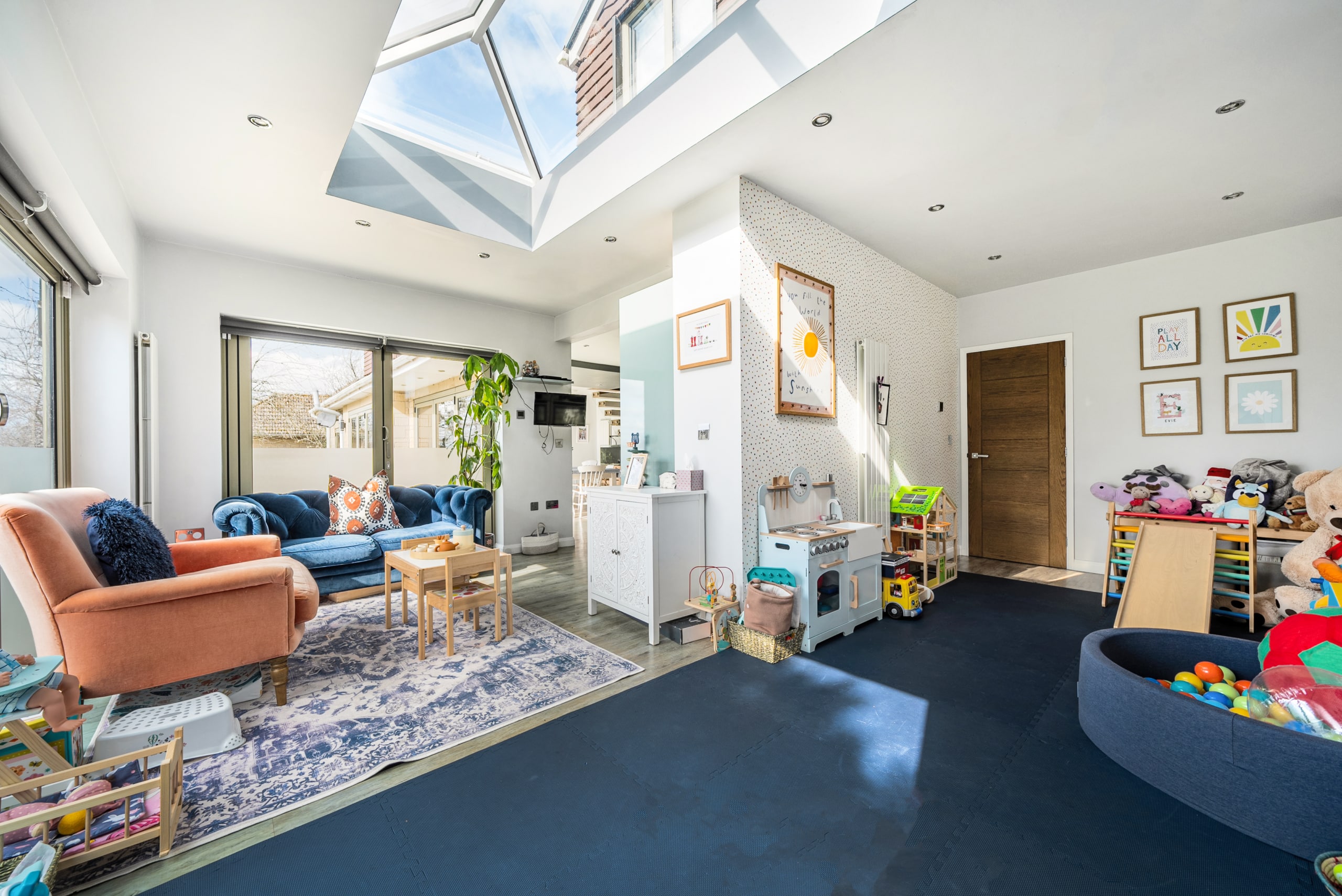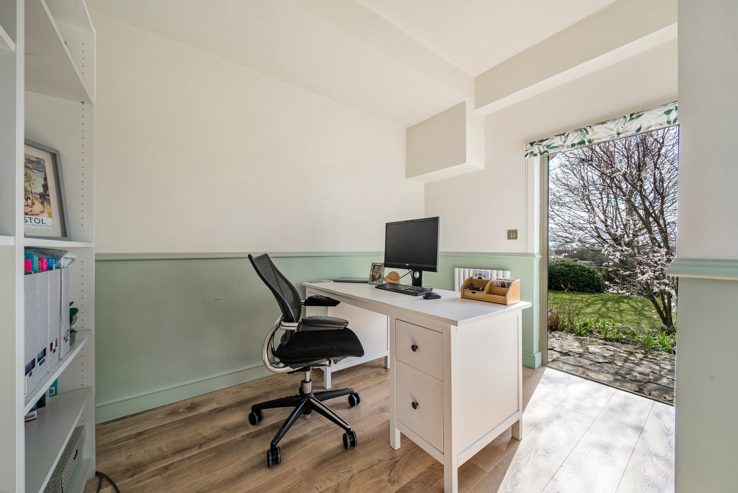 For practicality, the rear entrance leads to a boot room with access to a cloakroom/WC. A dedicated office space provides an ideal home-working setup.