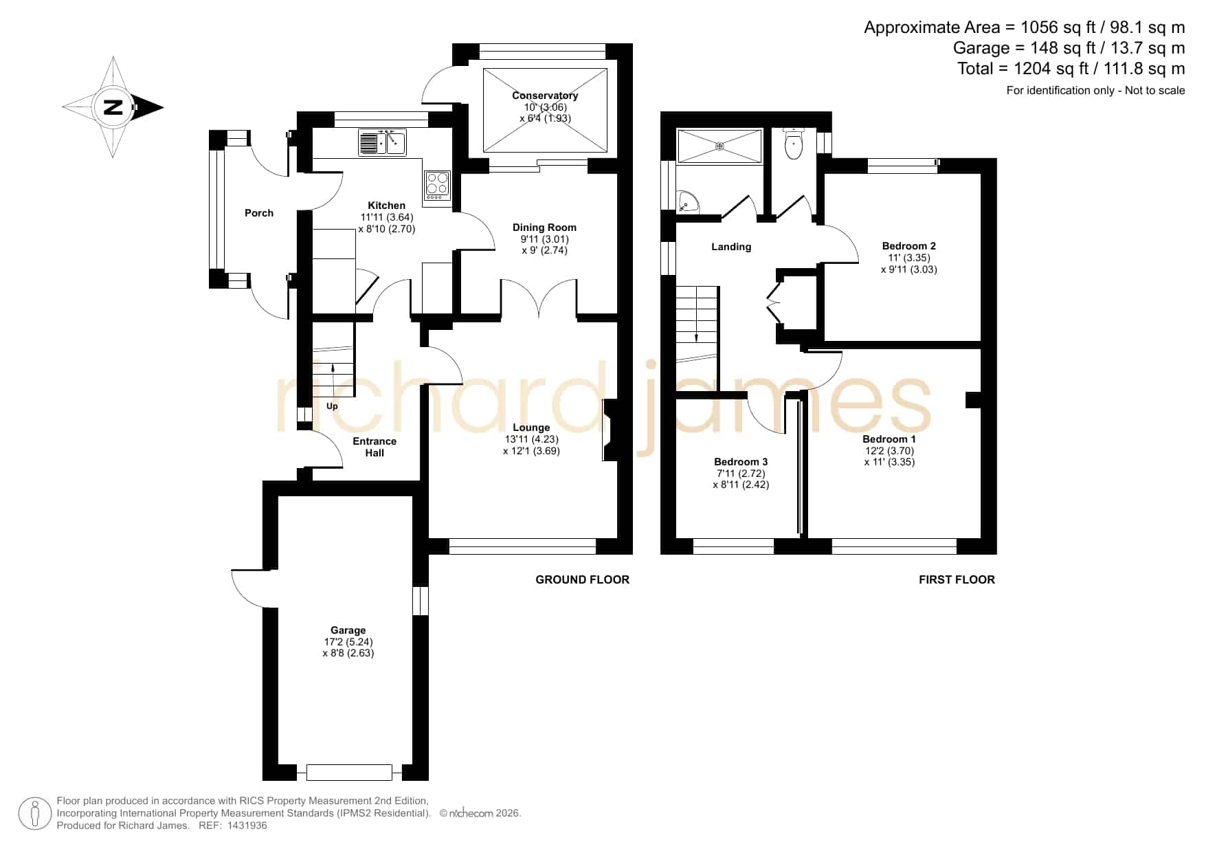 The ground floor features a welcoming entrance hall leading to a spacious lounge filled with natural light, alongside a separate dining room that connects to a bright conservatory—ideal for entertaining or relaxing while overlooking the garden. The kitchen is thoughtfully laid out with easy access to the porch and garden, creating a practical flow throughout the home.