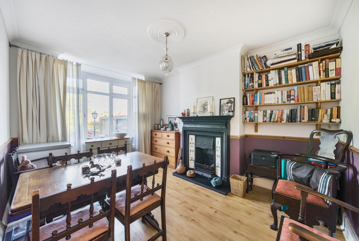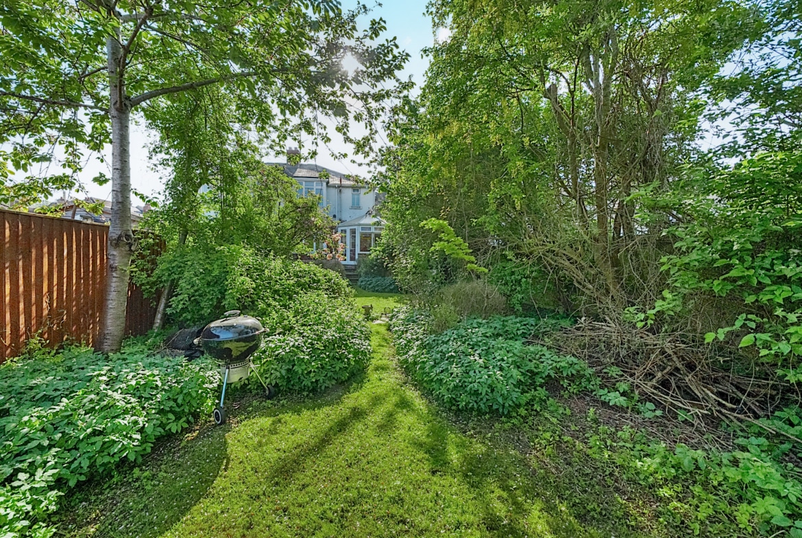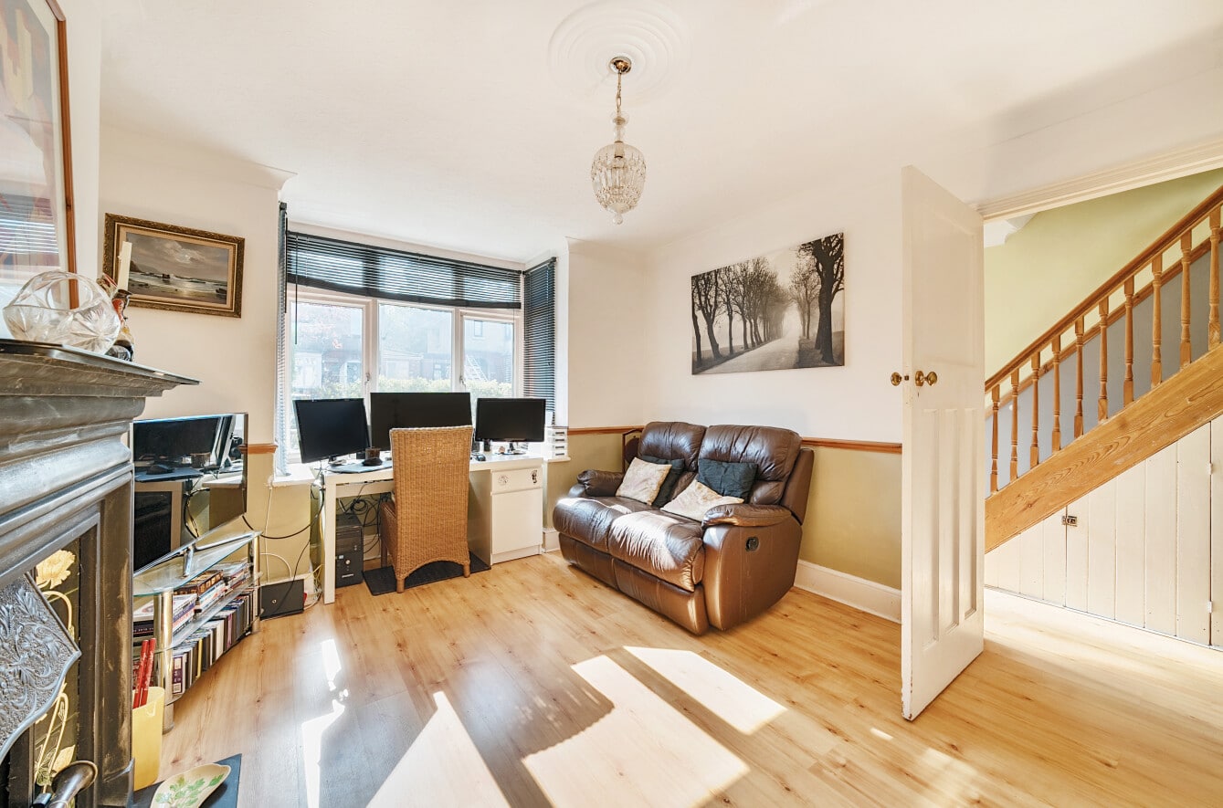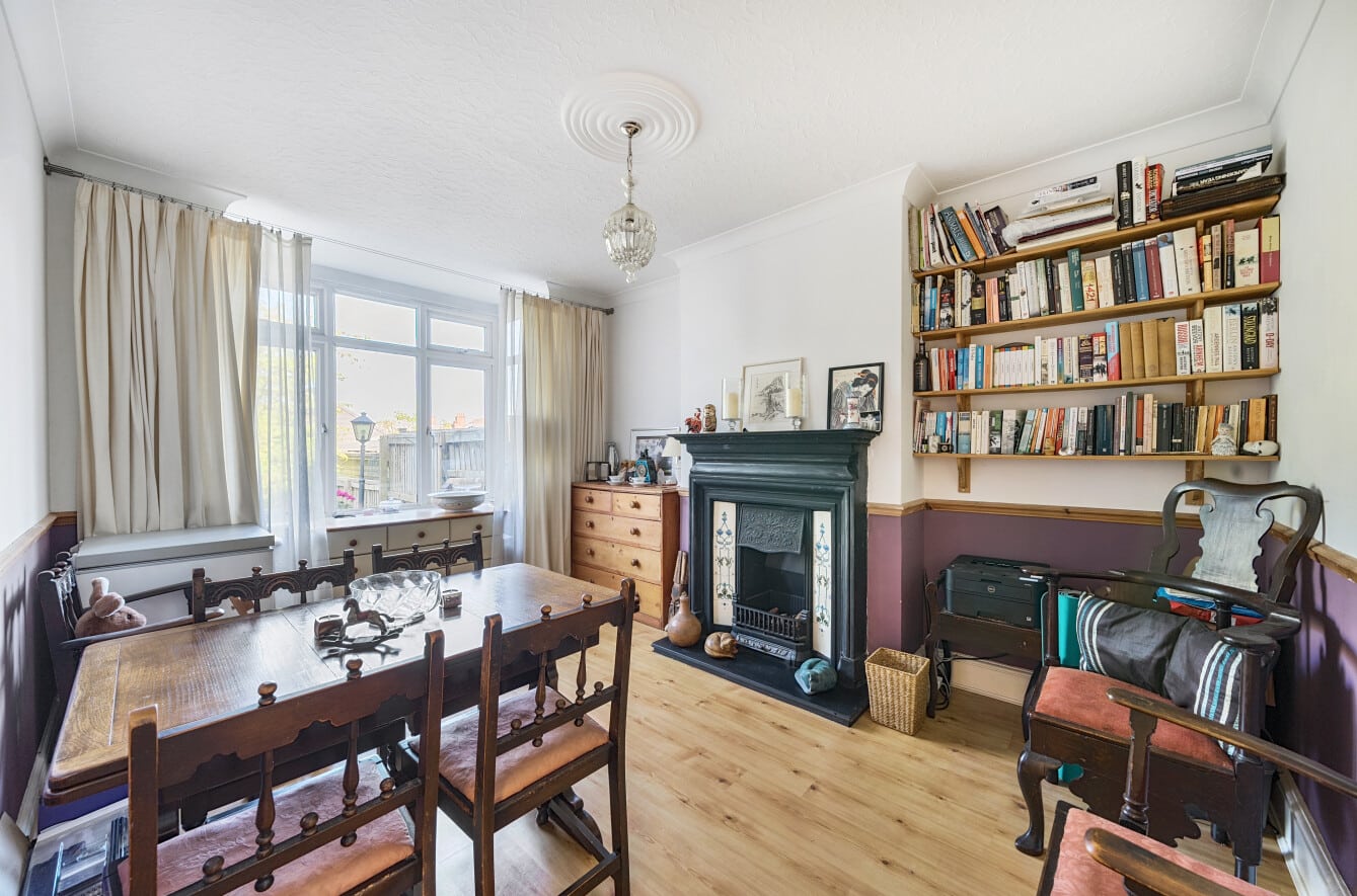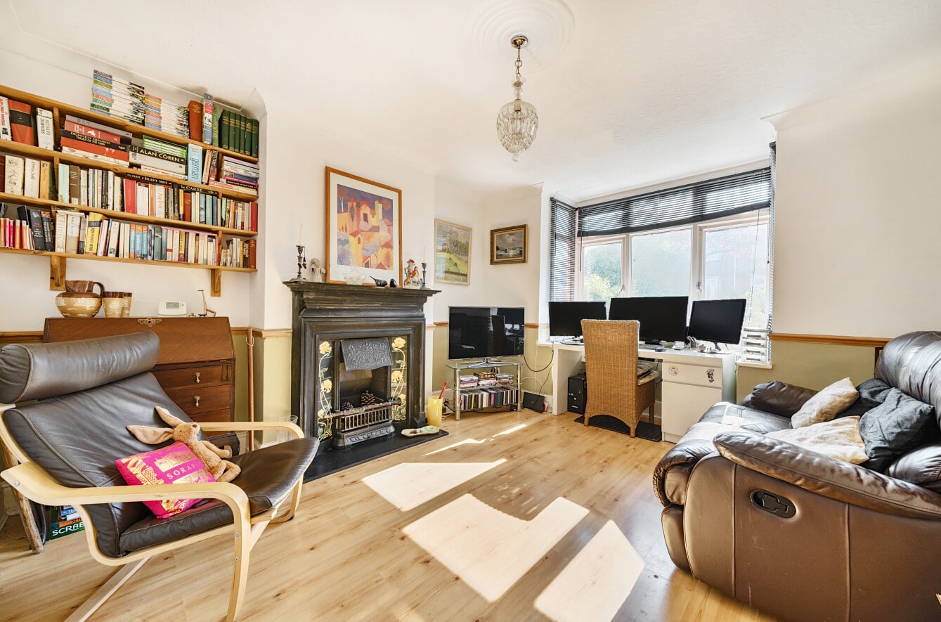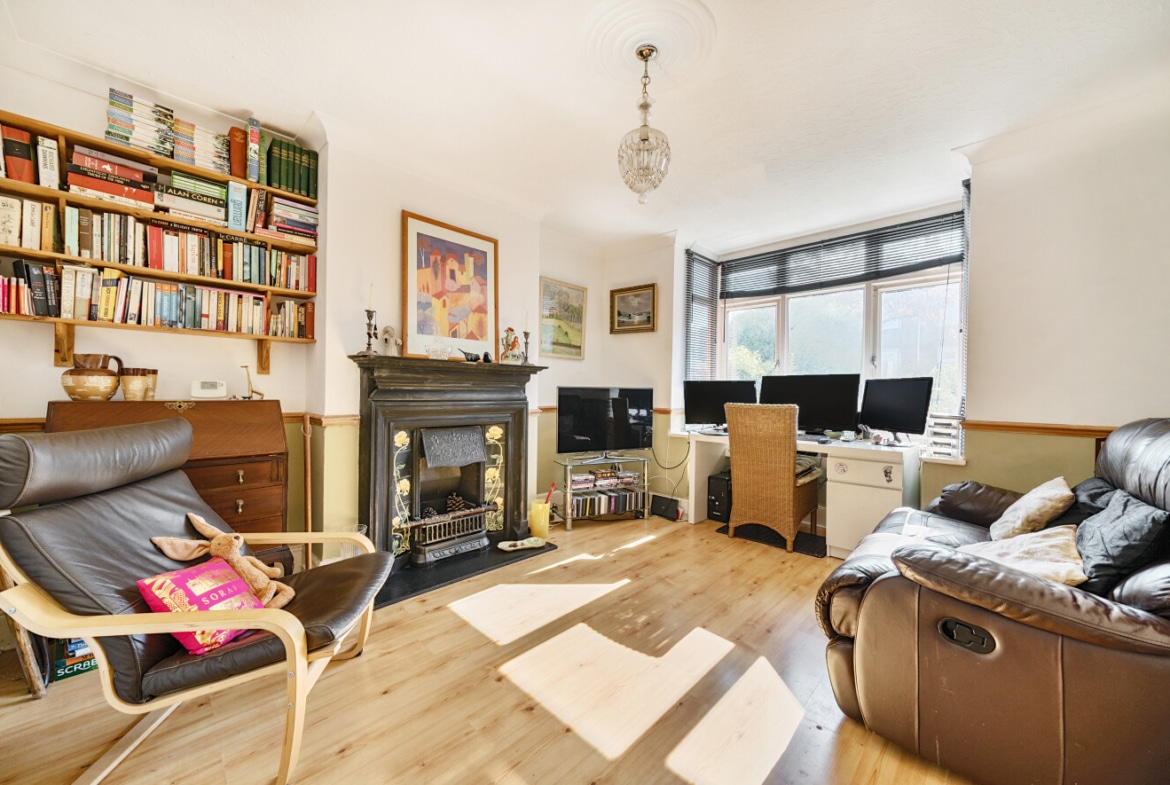 The spacious accommodation comprises: Hall, two generous Reception Rooms including Sitting Room and Dining Room, both with bay windows, 12′ fitted Kitchen and large PVCu Conservatory, which overlooks the mature Rear Garden. With the Three Bedrooms and Bathroom with roll top bath, to the first floor.