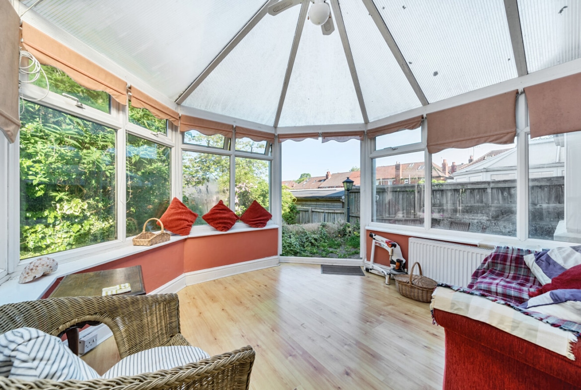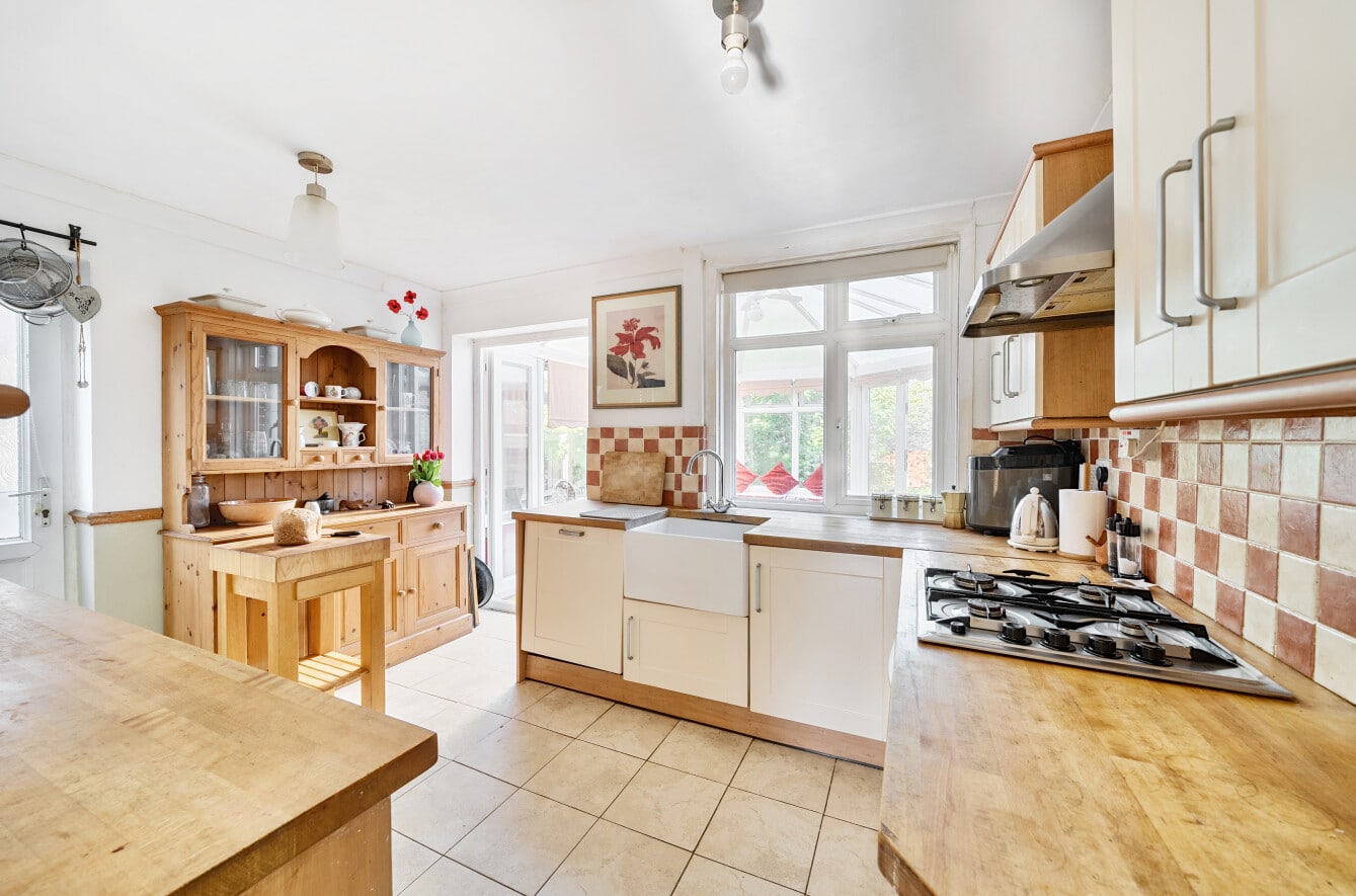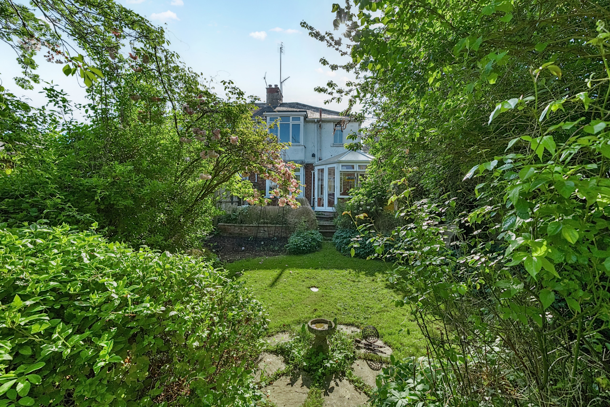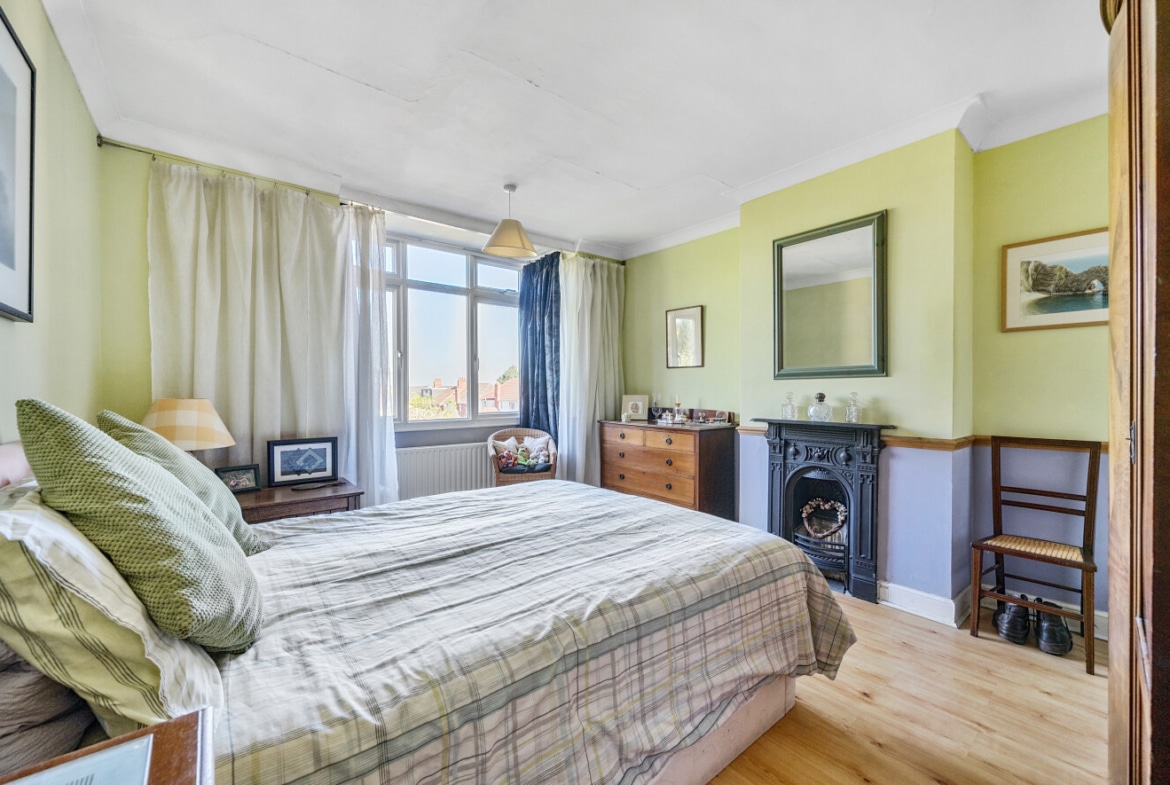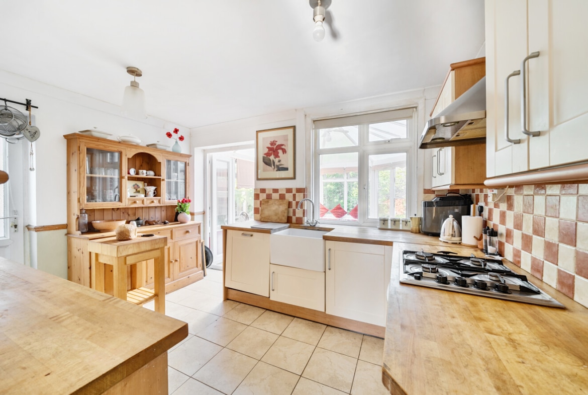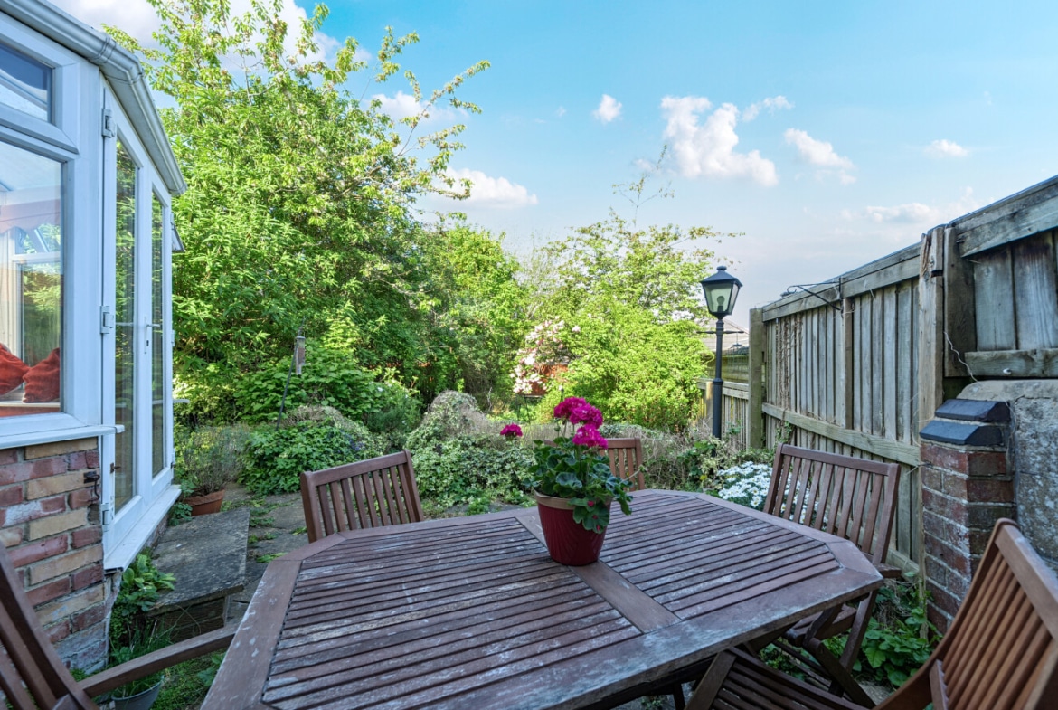 The spacious accommodation comprises: Hall, two generous Reception Rooms including Sitting Room and Dining Room, both with bay windows, 12′ fitted Kitchen and large PVCu Conservatory, which overlooks the mature Rear Garden. With the Three Bedrooms and Bathroom with roll top bath, to the first floor.