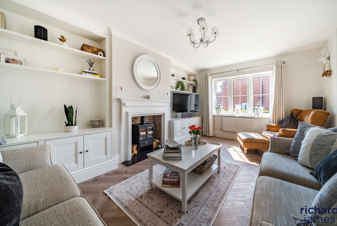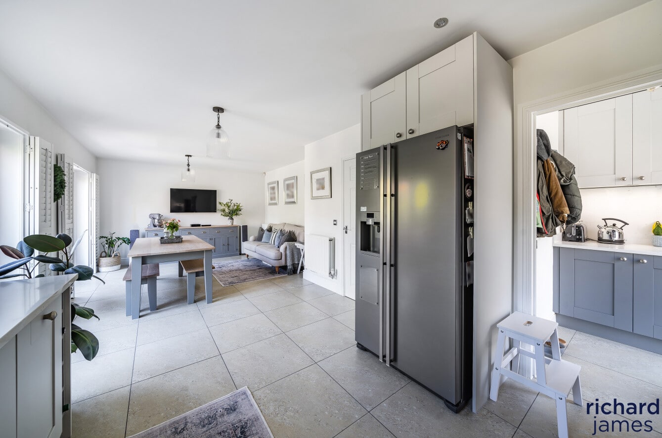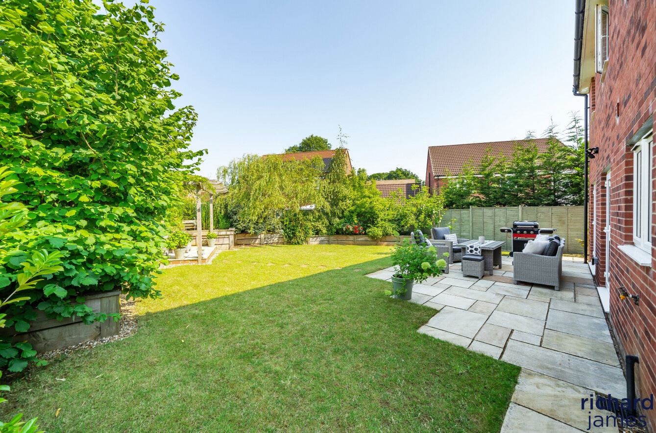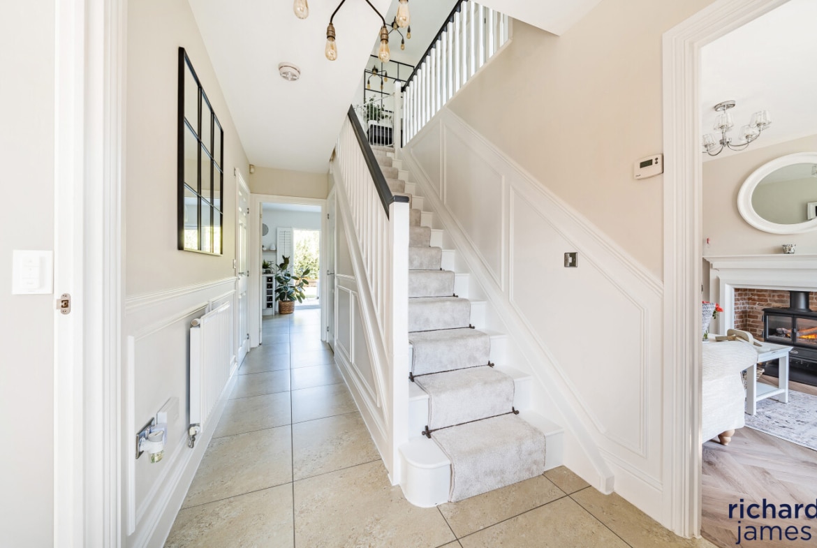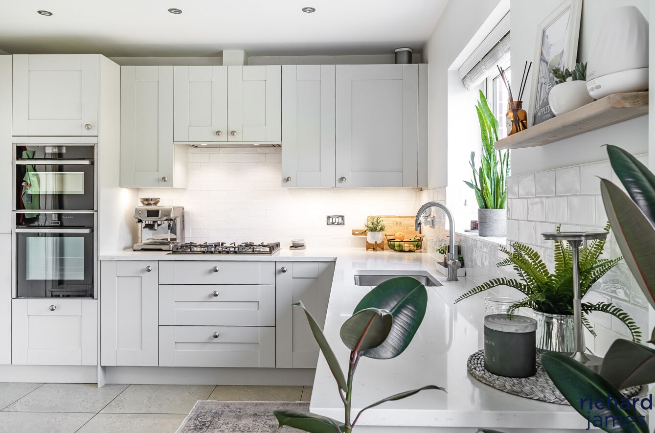 Built by messrs. Charles Church Homes, the property has been updated by the current owners to include many bespoke features, as well as a refitted 28ft Kitchen/Dining/Family Room, with integrated Neff appliances and patio doors opening into the landscaped Rear Garden, Refitted Ensuite with walk-in shower and ‘his and hers’ sinks and Double Garage, with twin remote controlled up and over doors.